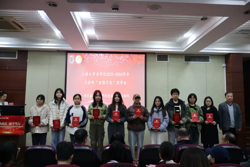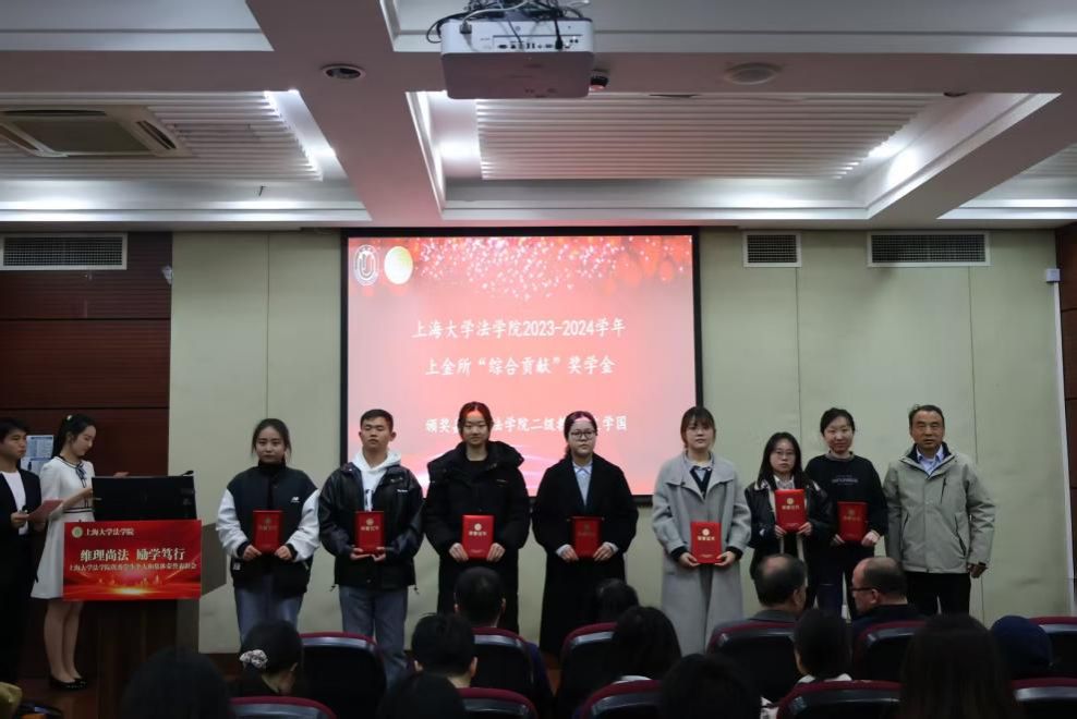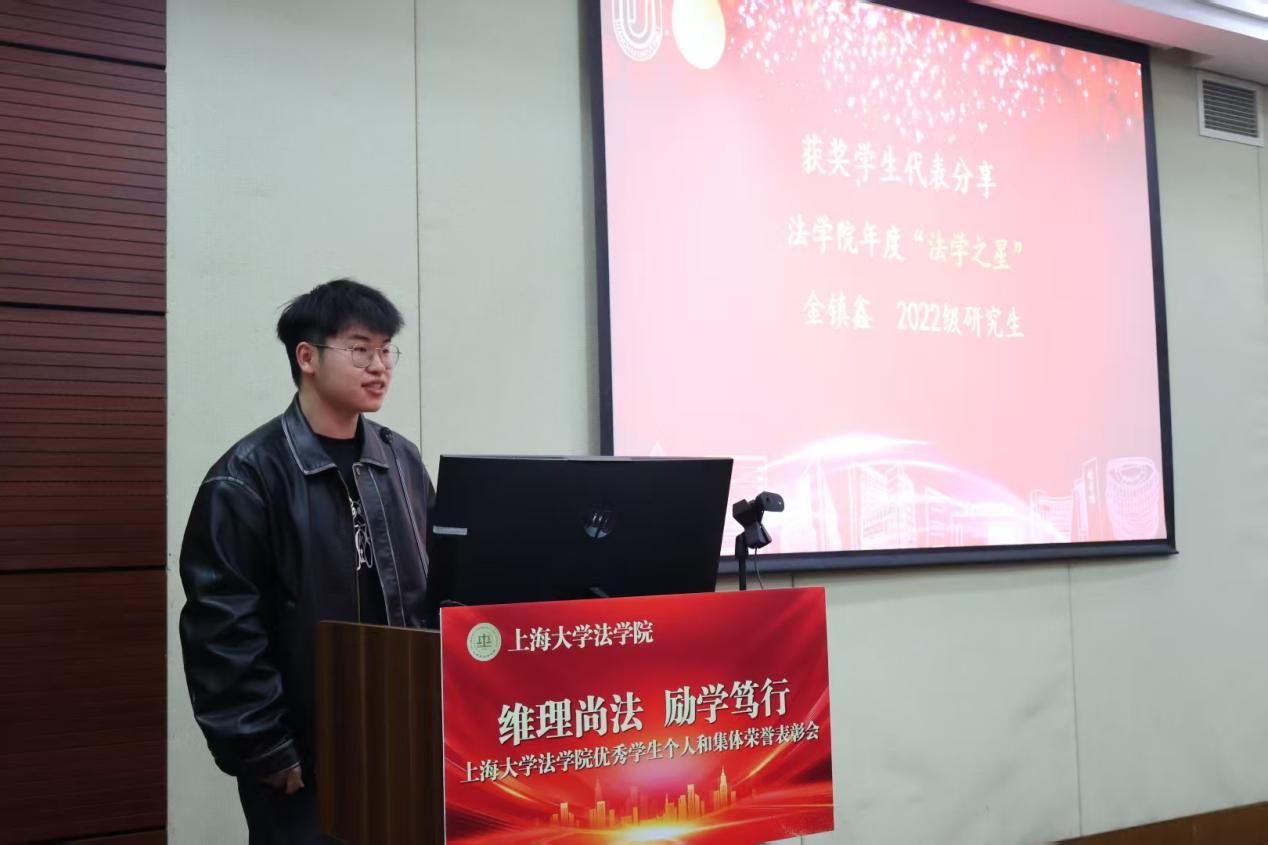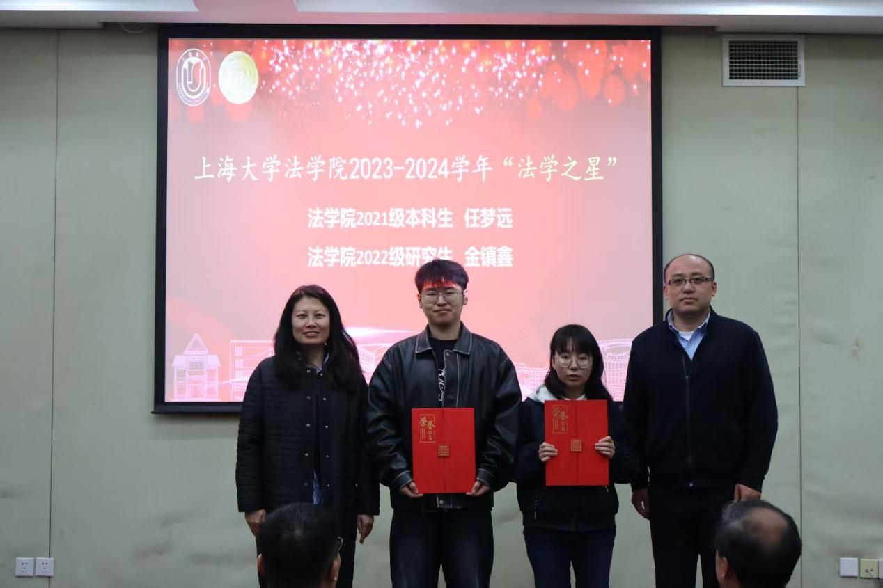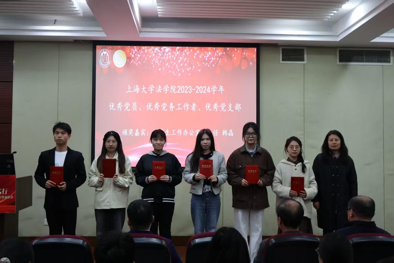 3月28日下午,法学院在宝山校区经管大楼115室举行2023-2024学年优秀学生个人和集体荣誉表彰大会。ac米兰官网中文网站学生工作办公室副主任韩晶、ac米兰官网中文网站党委研究生工作部副部长周轶,ac米兰官网中文网站法学院党委书记徐国明,法学院二级教授文学国,法学院党委副书记、副院长于伟,法学院副院长、知识产权学院院长袁真富以及学院各年级的辅导员老师、获奖学生以及各年级学生代表参加表彰大会。本次表彰大会由法学院研究生王睿思和本科生严嘉轩同学主持。