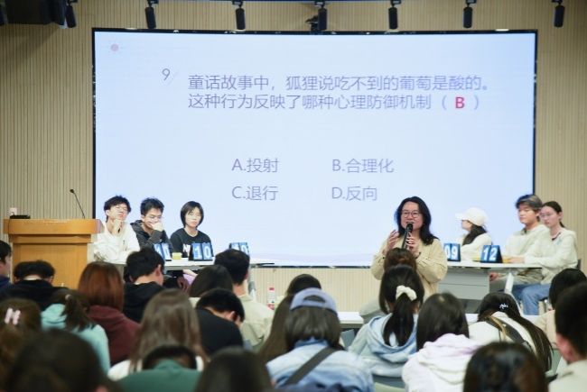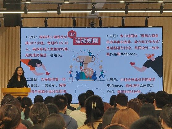 知识竞赛环节将活动推向高潮。同学们开展了紧张刺激的心理知识竞赛,最终评选出一、二、三等奖。竞赛间隙,心理辅导中心许静老师结合实战案例为全场同学进行了细致的心理知识讲解与普及。这场比拼不仅是知识的较量,更提升了心理委员们的知识储备与专业素养。