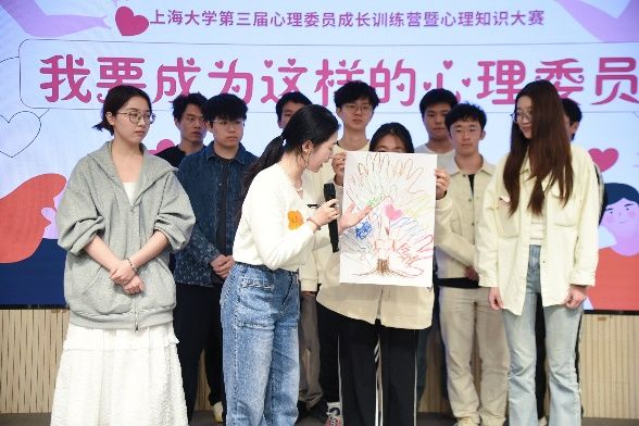 接下来,文学院迪拉热·达吾提老师组织同学们开展“我要成为这样的心理委员”的艺术共创活动。同学们以画笔为媒介,将心理委员的责任使命转化为可视化的心灵图景:或绘就"陪伴的翅膀",用线条纹路表现倾听共情的深意;或勾勒"守护之树"的枝繁叶茂,用渐变色谱象征心灵滋养的层次;也有作品以"怀抱成长"寓意心灵守护,用色彩描绘心委互助的力量。每幅画作都承载着独特的专业理解。当同学们逐一展示作品并解读创作理念时,画布上的色彩仿佛有了温度,凝结成心理委员们对这份使命的庄严承诺。