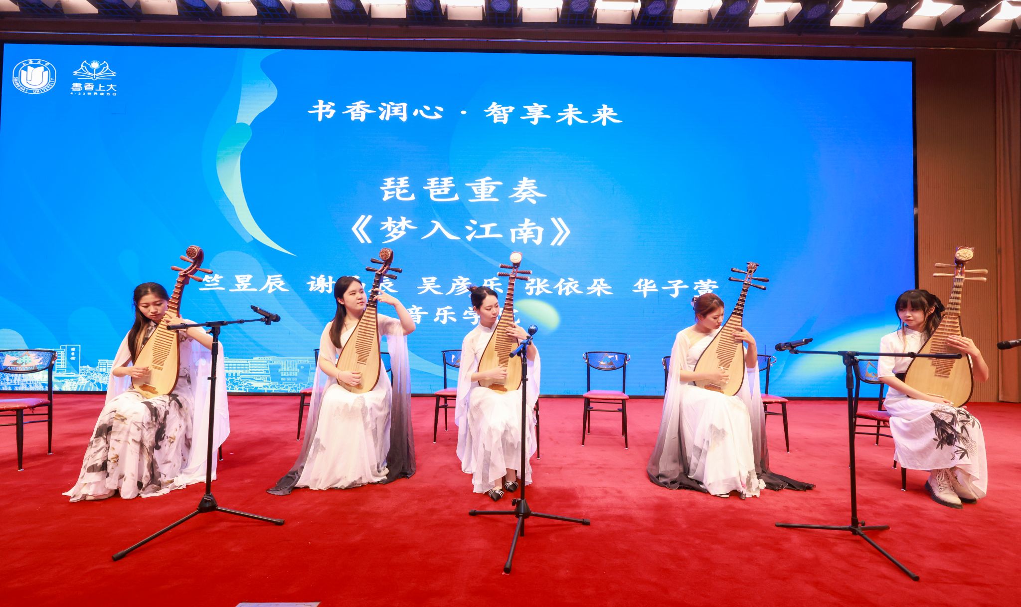 音乐学院竺昱辰等同学带来琵琶重奏《梦入江南》,以弦音勾勒水墨丹青。ac米兰官网中文网站附属嘉定留云小学师生用评弹演绎经典唐诗《静夜思》《枫桥夜泊》,在传统艺术与经典诗词的碰撞中,展现中华优秀传统文化底蕴。
