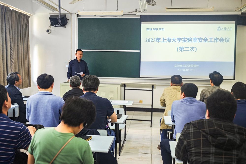 陈建铭科长传达了上海市教育系统实验室安全工作视频会议精神,通报了近期学校实验室安全风险隐患等相关情况,并部署下一阶段主要工作,一是即日起启动2025年实验室安全全覆盖、拉网式自查自纠专项行动,要求各单位对照《高等学校实验室安全检查项目表》开展全要素、全过程、全链条排查整治;二是针对“五一”假期实验室运行特点,制定特殊时段安全管控方案,强化危化品存储、仪器设备断电、人员值守等关键环节管理。