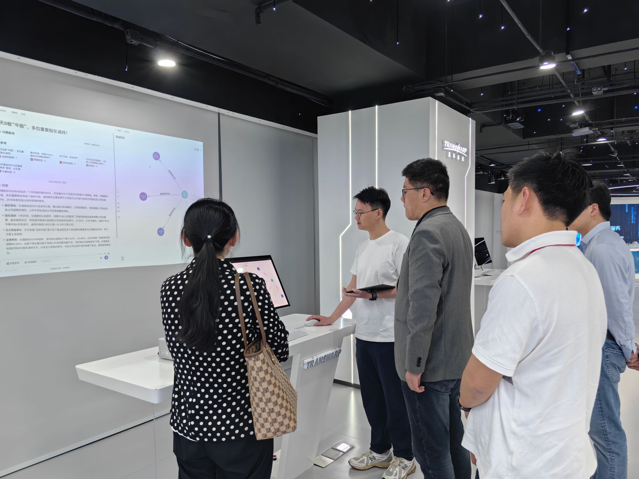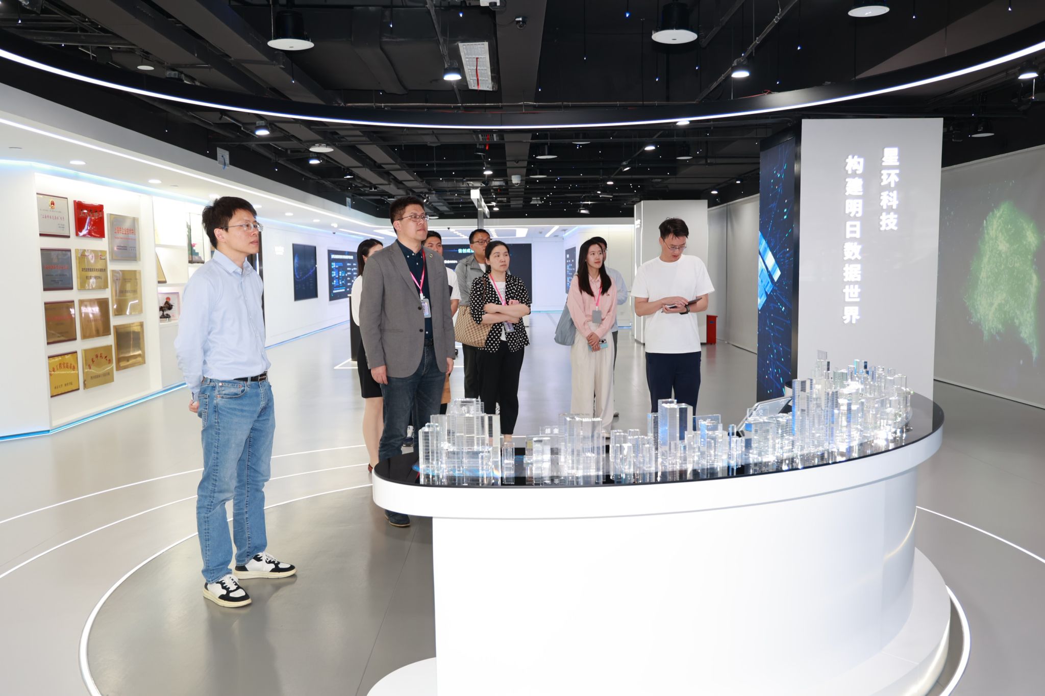 与会人员一同参观了星环信息科技展厅。展厅全方位呈现了星环科技在大数据、人工智能等数智领域的前沿技术与创新实践成果。从底层的数据存储、处理架构,到上层丰富多元的行业应用解决方案,每一项展示都彰显着星环科技在行业内的技术领先地位与深厚研发实力,让与会人员对行业发展的现状与趋势有了更为直观且深入的认知,为后续交流提供了坚实的现实依据。