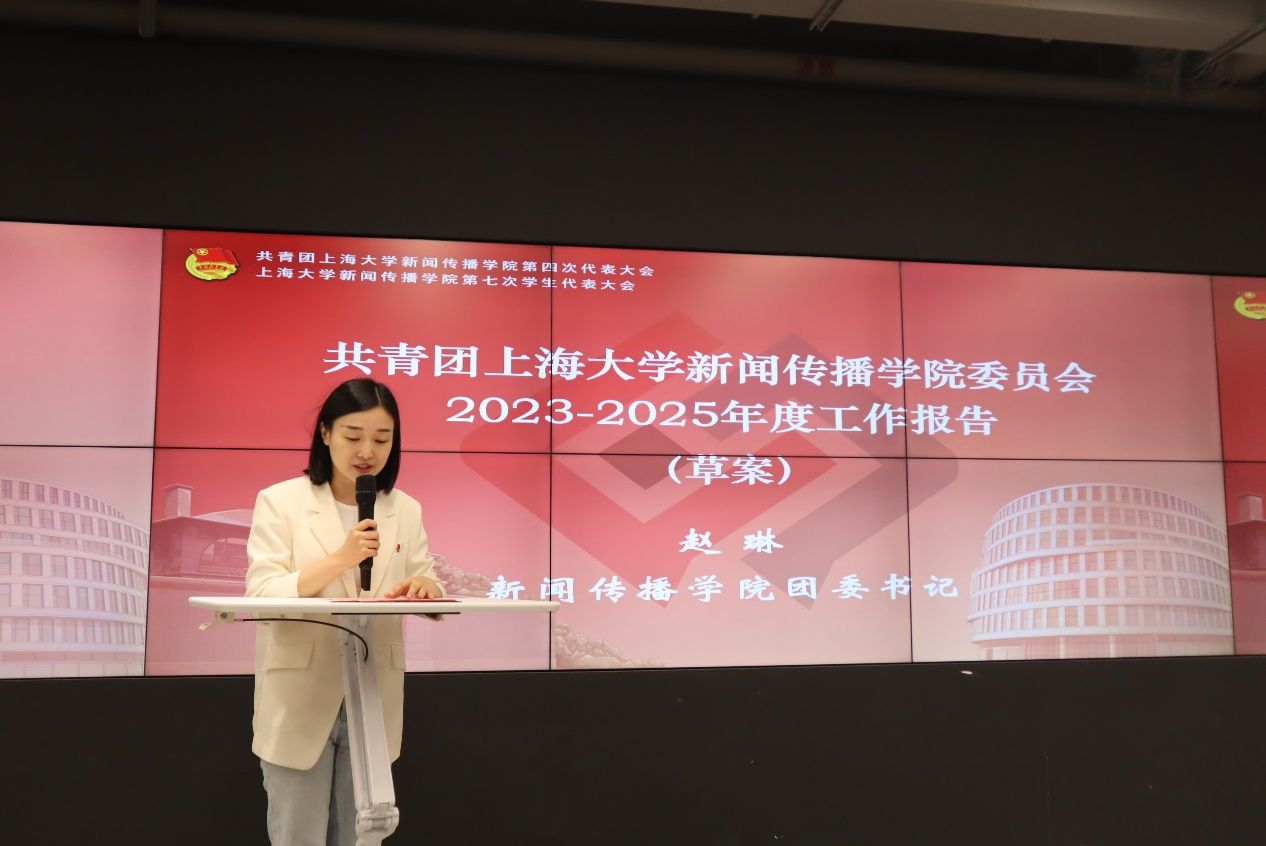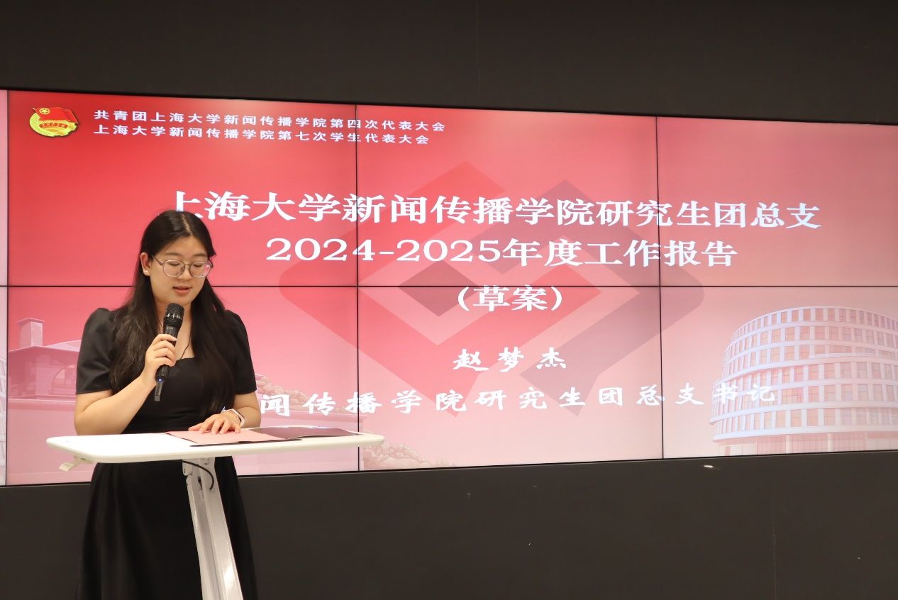 新闻传播学院团委书记赵琳、研究生团总支书记赵梦杰、学生会主席团成员王佳妮分别代表学院团委、研究生团总支和学生会作工作报告,全面总结了学院团学组织在思想引领、组织建设、品牌活动、服务青年等方面的工作成效。