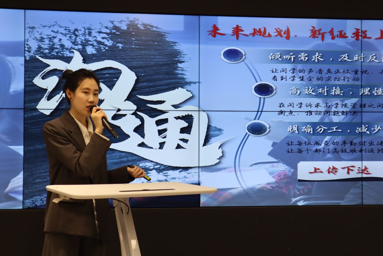 竞选环节中,各位团委委员、学生会主席团候选人依次上台进行竞选演讲,讲述初心使命,彰显青春风采。