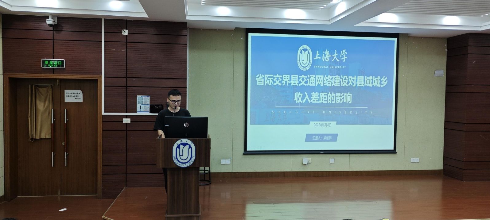ac米兰官网中文网站硕士研究生梁世群以《省际交界县交通网络建设对县域城乡收入差距的影响》为题,介绍了跨省高速公路的开通建设对省际边界区县城乡收入差距的影响。
