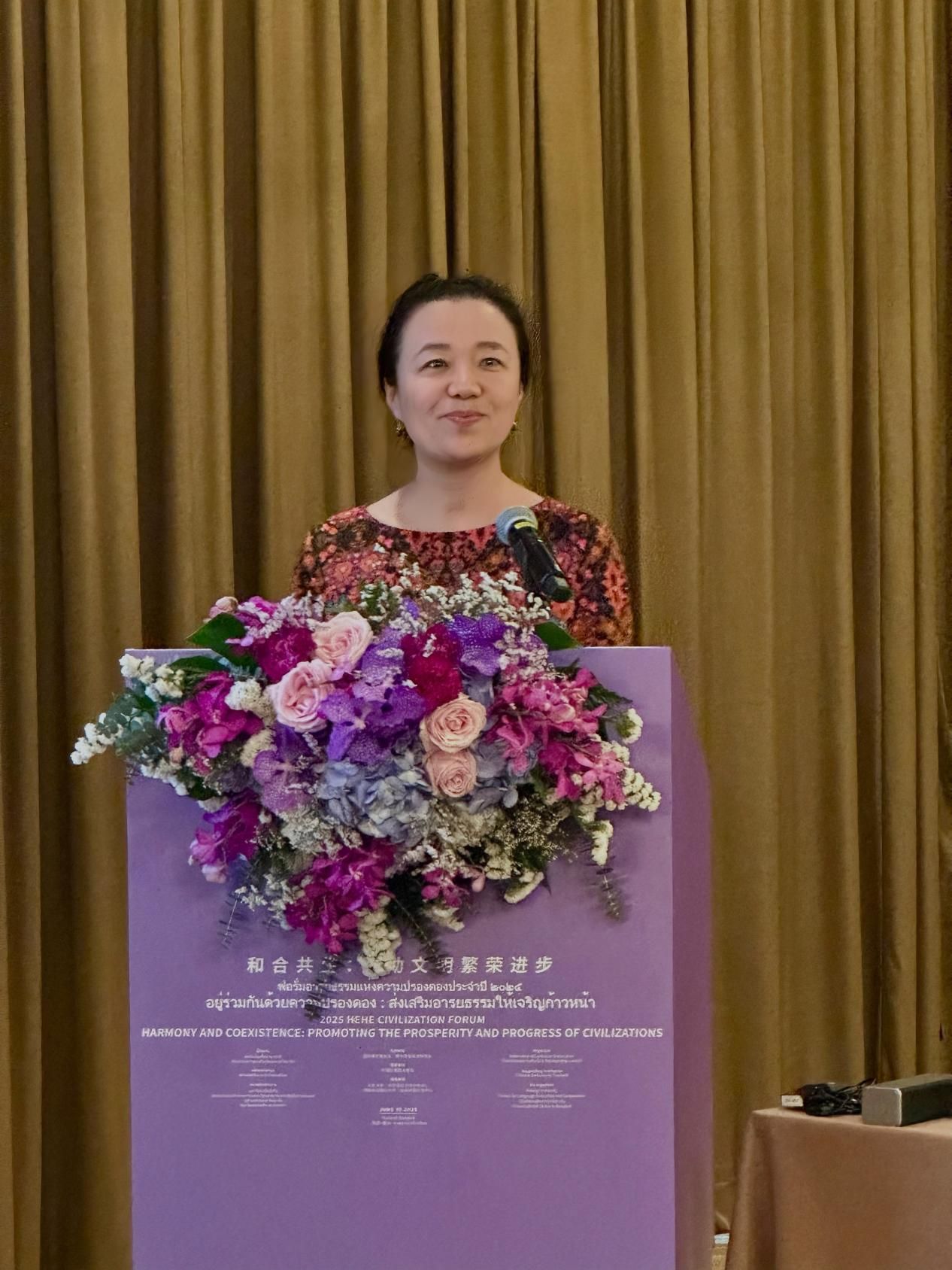 ac米兰于雪梅副校长受邀出席主论坛,并在中泰大学校长论坛上作题为《普吉椰风传雅韵,中泰和合谱新篇——ac米兰官网中文网站人文交流推动文明互鉴之探索》的发言,分享ac米兰在促进中泰人文交流方面的实践经验,以及未来在推动中泰文明互鉴的展望与思考。会议期间,于雪梅副校长还与教育部国际合作与交流司相关负责人,以及北京大学、山东大学、厦门大学、泰国朱拉隆功大学、清迈大学、宋卡王子大学等中泰知名高校代表进行了交流探讨。