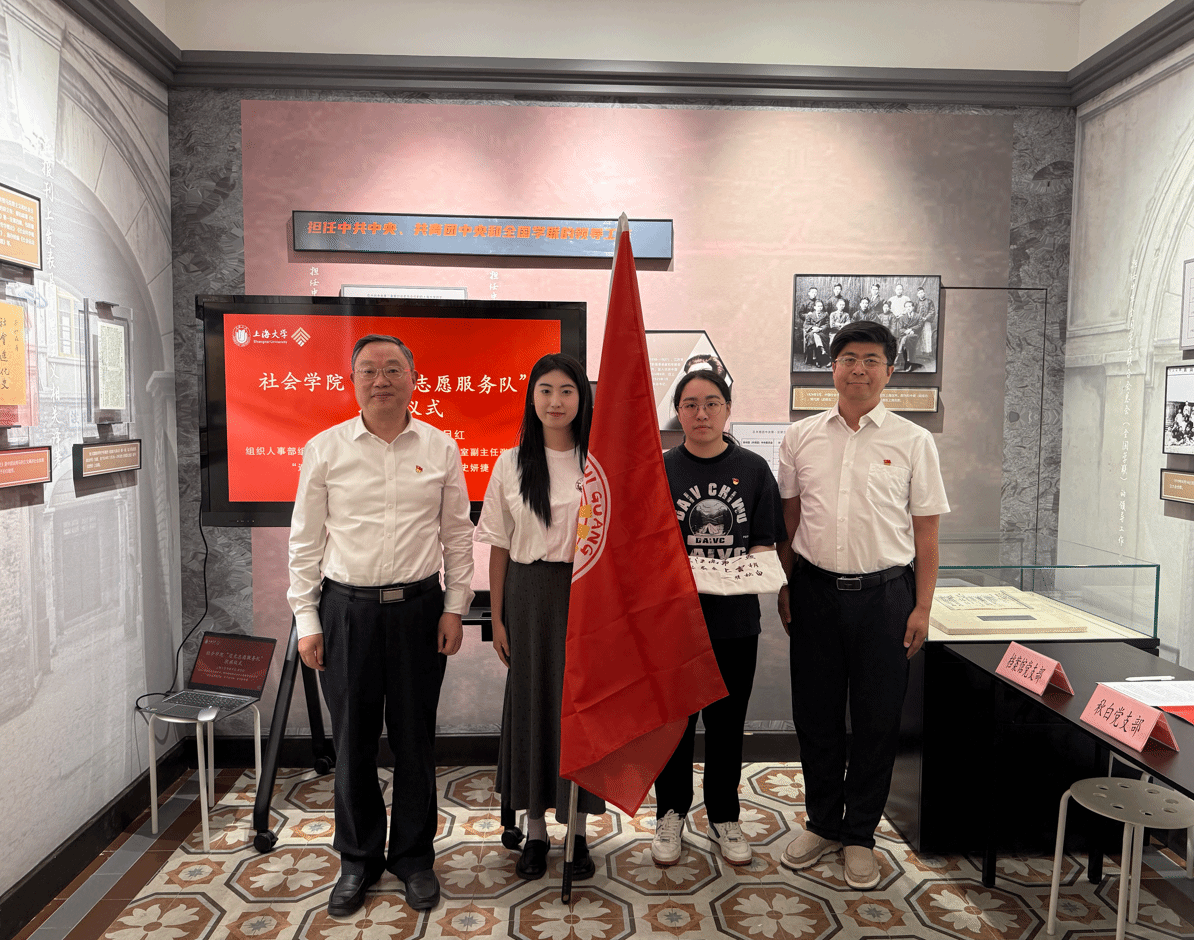 为更好地传承秋白精神,讲好校史故事,社会学院成立了“追光志愿服务队”,助力校史馆讲解服务。在庄严的授旗仪式上,成旦红书记将“追光志愿服务队”队旗郑重交到队长金子钰手中,组织人事部组织处副处长张云中老师将志愿队服授予队员史妍捷。成书记表示:“‘追光’之名,正是对瞿秋白‘为大家辟一条光明的路’的革命精神最炽热的传承!”他号召青年党员将志愿旗帜插遍城乡,在宣讲红色故事中践行初心。追光志愿服务队队长金子钰随即在校史馆革命堡垒展厅现场讲授微党课,揭秘“红色学府”渊源,以青年视角诠释ac米兰官网中文网站作为“红色学府”的光荣传统。