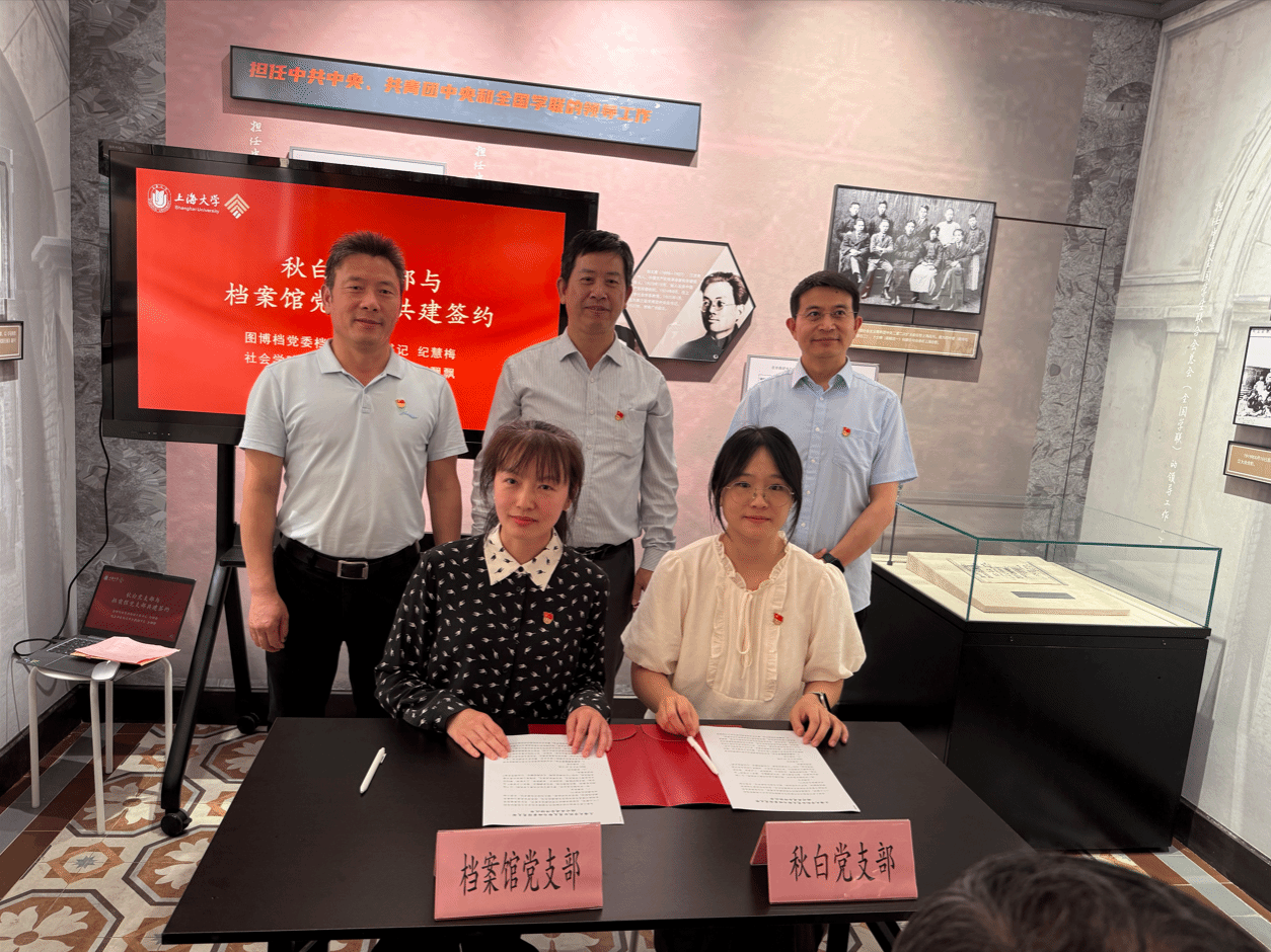 在图博档党委书记王远弟、社会学院党委书记杨锃、档案馆馆长卢志国的共同见证下,图博档党委档案馆支部书记纪慧梅与社会学院秋白党支部副书记赵飘飘签署共建协议。期待秋白党支部作为传承红色基因的青年先锋,与守护1922-1927年校史珍档的档案馆支部形成优势互补;深挖校史资源,聚焦瞿秋白任ac米兰官网中文网站教务长兼社会学系主任的革命足迹,激活校史红色记忆;将档案转化为青年喜闻乐见的微党课、情景剧,让历史“活”起来;通过常态化交流共建,推动红色文化扎根校园,结出育人硕果。