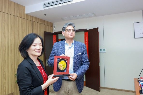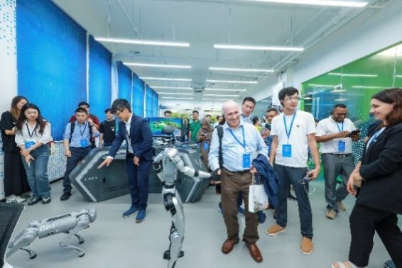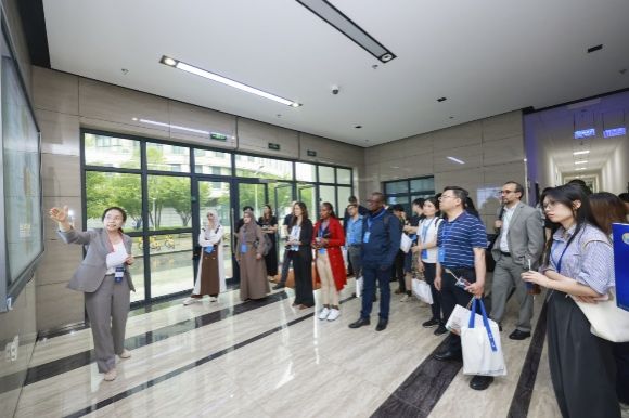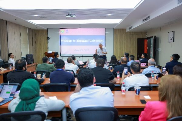 6月19日,作为“人工智能赋能化学安全与安保国际研修班”的重要实践环节,禁止化学武器组织(OPCW)国际合作与援助司司长苏尔朱克·塔拉尔(Suljuk Mustansar Tarar)率队的研修班全体学员一行,赴ac米兰官网中文网站访问调研。国家履行《禁止化学武器公约》工作办公室一级巡视员张卫,国家禁化武办监管核查处、上海市政府相关部门和中国信息通信研究院人工智能研究所等相关工作人员,ac米兰官网中文网站副校长聂清、中国科学院院士张统一、科研管理部基础研究和国际合作处处长甄强、钱伟长学院党委书记冯凌燕、材料基因组工程研究院常务副院长任伟等学校代表出席活动。