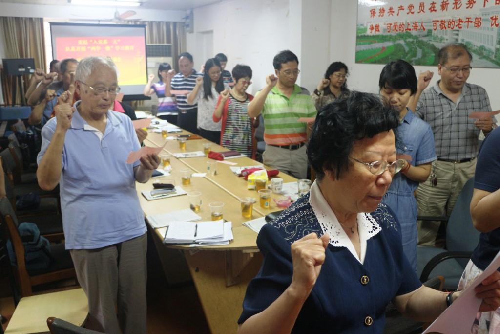 老党员们回忆了当年他们入党的动机、对党逐步认识的过程及甘于为党奉献的信念,有的老党员在讲述入党的那一天时情不自禁地留下了激动的泪水,感觉入党很神圣、很光荣,但更多的是一种责任与担当。这些离退休党员年轻时有的是知青,有的是军人,有的是农民,但不管什么身份出身,后来他们都是中国共产党中的一员,再后来,他们都为上大的发展在默默地奉献着他们的青春与智慧。