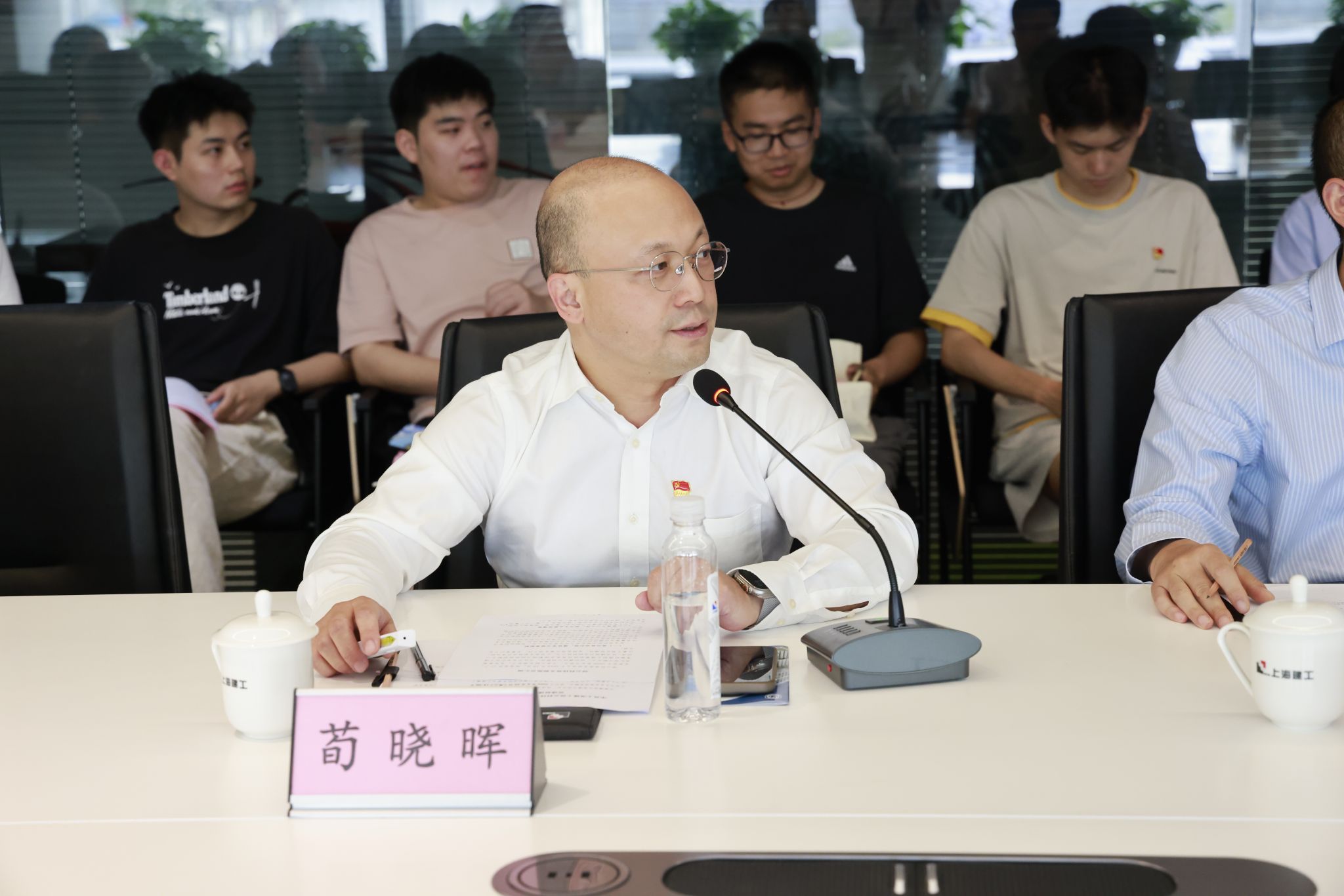 党支部副书记、副总经理荀晓晖及技术副总监谭瑜琳,分别就党支部基本情况、智慧工地业务情况等展开介绍。