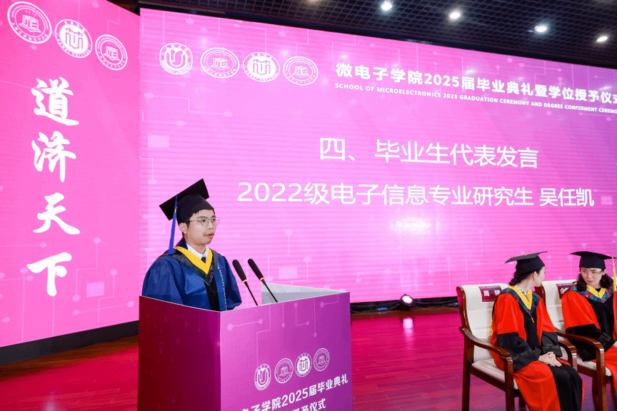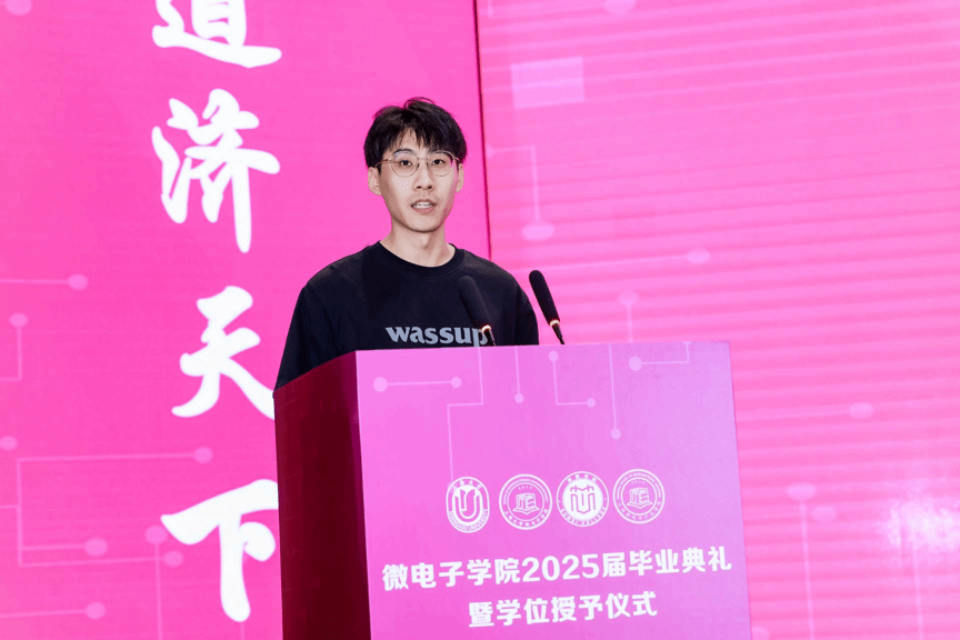 即将前往清华大学攻读博士学位的毕业生代表吴任凯回顾了三年科研生涯中的国际化探索,表示将牢记国之大者,加倍努力,为集成电路事业发展贡献青年力量。