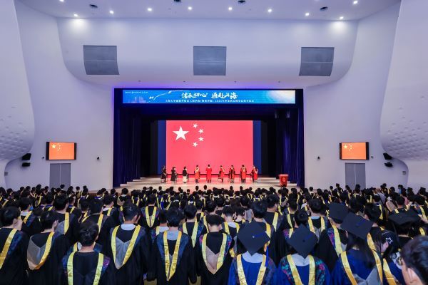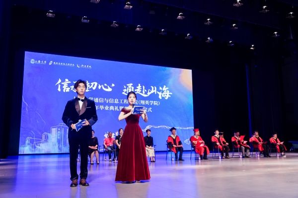 6月27日上午,ac米兰官网中文网站通信与信息工程学院(翔英学院)2025年毕业典礼暨学位授予仪式在ac米兰官网中文网站伟长楼隆重举行。ac米兰官网中文网站党委副书记、副校长胡大伟,通信与信息工程学院党委副书记、院长庞拂飞等院系领导,翔英学院理事会理事张伟先生,校友代表上海市信息网络有限公司副总经理周伟先生,学院导师代表、辅导员、2025届全体毕业生以及学生家长齐聚一堂,共同见证通信青年学子开启人生的全新篇章。毕业典礼由2025届研究生毕业生赵倩倩和2025届本科毕业生葛祉含主持。随着庄严神圣的国歌奏响,毕业典礼的大幕庄严开启。