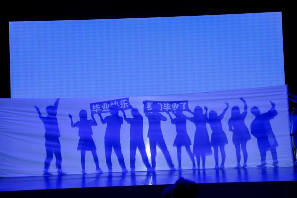 毕业生节目环节,刘鹏宇、吴心怡等10位同学带来幕布剧《韶光剪影》,运用光与影的艺术展现了大学生活中的点点滴滴,每个片段都将沉淀为未来的美好回忆;张煜东、赵依卓等4位同学献上歌曲联唱——《裹着心的光》和《凤凰花开的路口》,用歌声唱出了对过去的不舍和对未来的憧憬。