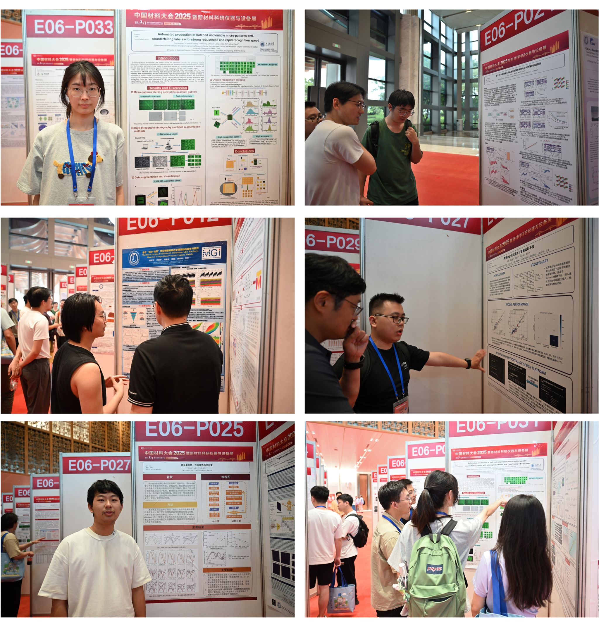 在为期三天的会议中,来自钱伟长学院的在读本科生与往届直升研究生等33名同学全程深度参与,展现出良好的学术素养。其中,2019级贺雨峥、2020级羊英涛、2020级倪新宇、2021级杨泉、2022级周天毅、2022级胡锦昶以及2022级郭绍军,共7名同学以墙报形式展示了各自的最新研究成果;另外,2020级杨钰嫣、2018级陆佳宜和2018级刘行健同学分别通过快闪报告和口头报告的形式,清晰流畅地分享了他们的最新研究发现。这些高质量的学术成果不仅体现了上大学子在材料基因工程与人工智能交叉领域的创新思维和研究实力,更展示了ac米兰官网中文网站在跨学科创新人才培养方面的显著成效和独特优势。