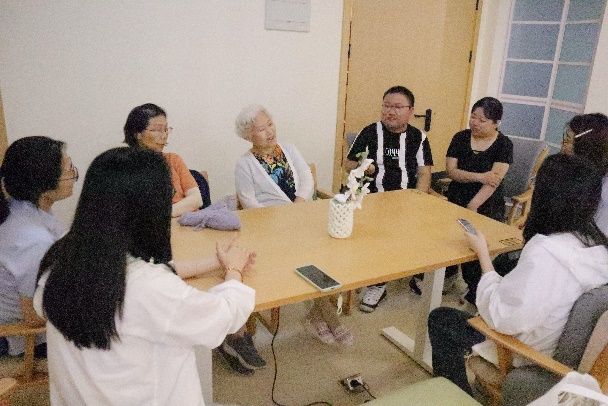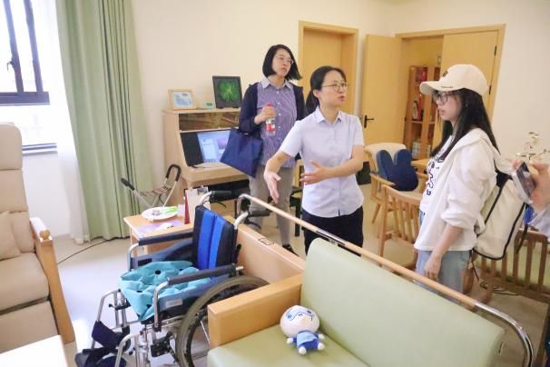 在长宁区江苏路街道的申宁苑综合为老服务中心,团队向工作人员深入了解江苏路街道的老龄化情况,详细询问适老化项目改造情况及智能化设备适老状况等内容。团队成员亲身体验虚拟超市购物、虚拟ATM使用等智能康复项目,并与认知障碍老年患者的智能伴宠——“嘉嘉”进行近距离接触。在黄浦区五里桥街道社区综合为老服务中心,团队成员们深入调查养老服务数据大屏与养联卡的具体使用情况。在与社区老年人代表、社区工作人员座谈中,两位90岁高龄的奶奶笑盈盈地向团队成员讲起社区为老年人提供的贴心帮助,还向成员们展示社区专门为老年人定制的“安享包”服务等。在普陀区曹杨新村街道,团队走访了杨新村街道社区事务受理服务中心及云集曹杨养老院,了解到曹杨新村是全市首发一键叫车社区点,该做法有效跨越数字鸿沟,方便老人出行。