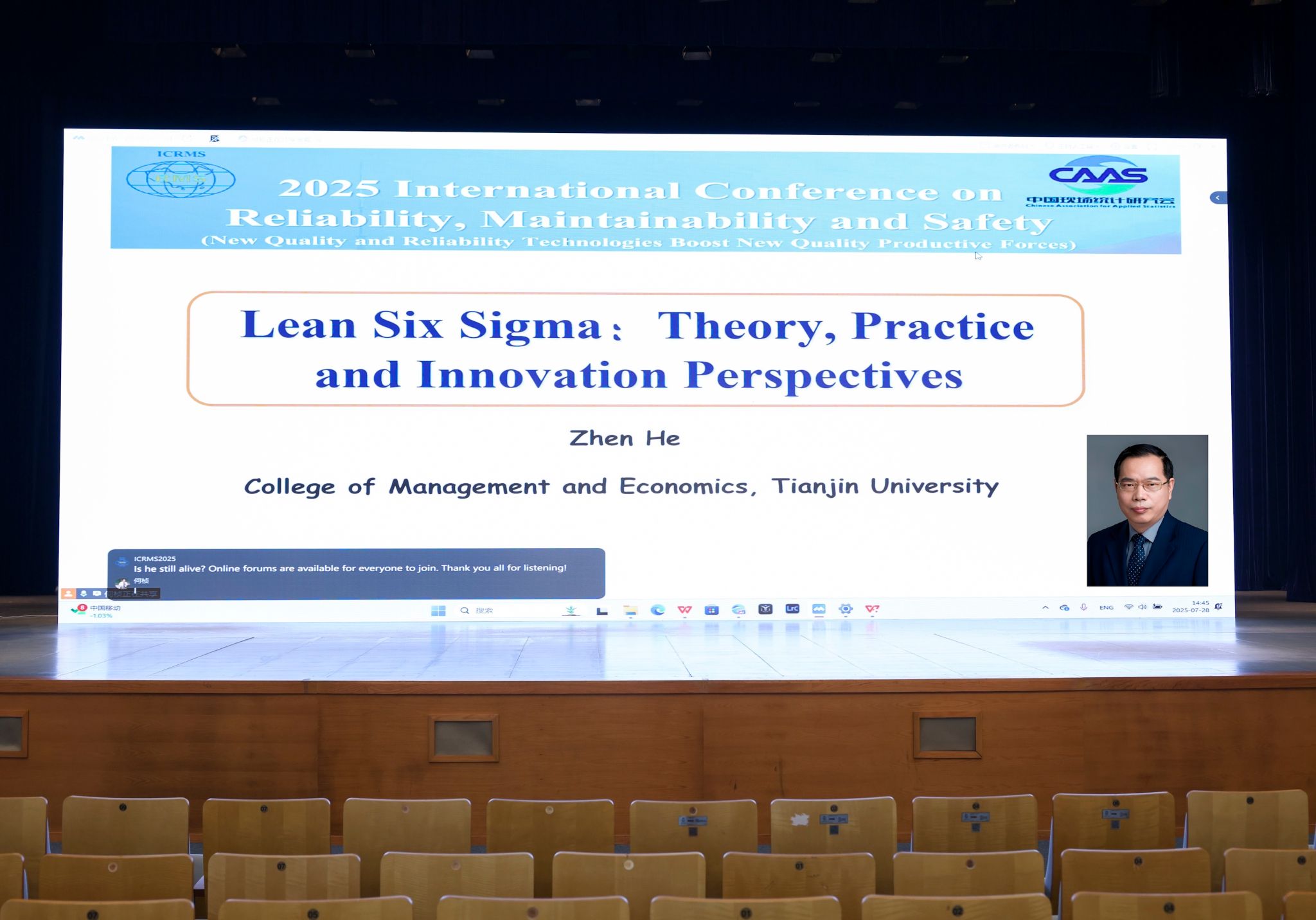 7月27日至30日,由ac米兰官网中文网站管理学院承办的2025国际可靠性维修性安全性会议在ac米兰官网中文网站成功举行。本次会议主题为“质量可靠性新技术,助推新质生产力”,邀请了中国工程院院士王自力、欧洲科学与艺术院院士谢旻、加拿大工程院院士左明健、新加坡工程院院士Loon Ching Tang等国内外著名专家。来自中国、美国、日本、法国、德国、新加坡、沙特、南非、智利等国家的450余位学者参会。会议由中国现场统计研究会轮值主办,中国电子学会、中国机械工程学会、中国仪器仪表学会、中国兵工学会、中国宇航学会和中国航空学会联合主办。