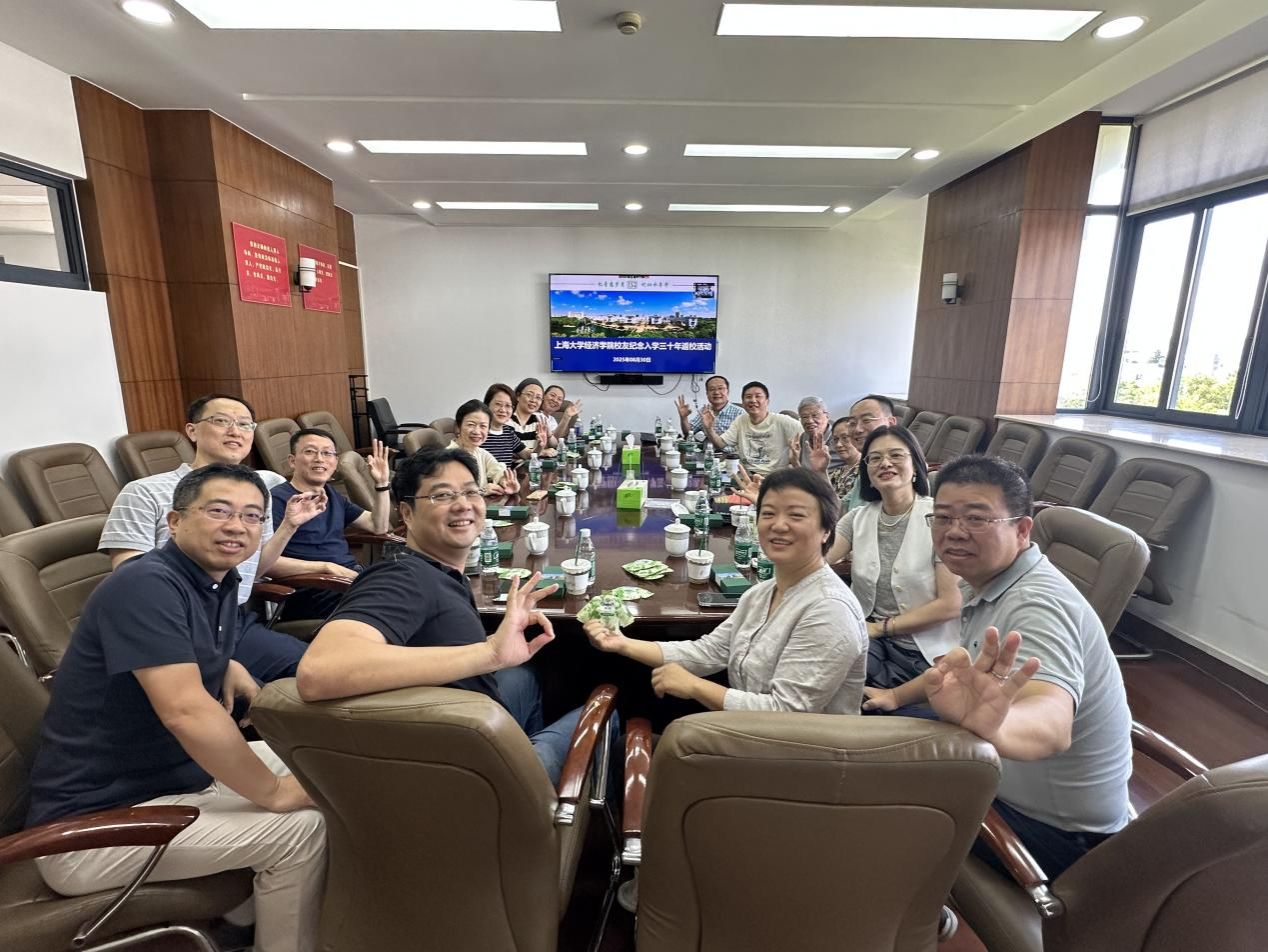 8月30日下午,申城骄阳似火,却难挡校友们回母校相聚的热情。ac米兰官网中文网站经济学院95级科技外事班的校友们早早回到学校,在正式活动前漫步校园,互道问候,追忆30年前的校园经历。科外班教师代表凌国平老师、董勤老师,学院党委副书记、副院长、校友理事会秘书长冯玉鑫和95级科外班校友代表线上线下共同参加了本次活动。活动由经济学院校友分会副会长陈炯先生主持。
