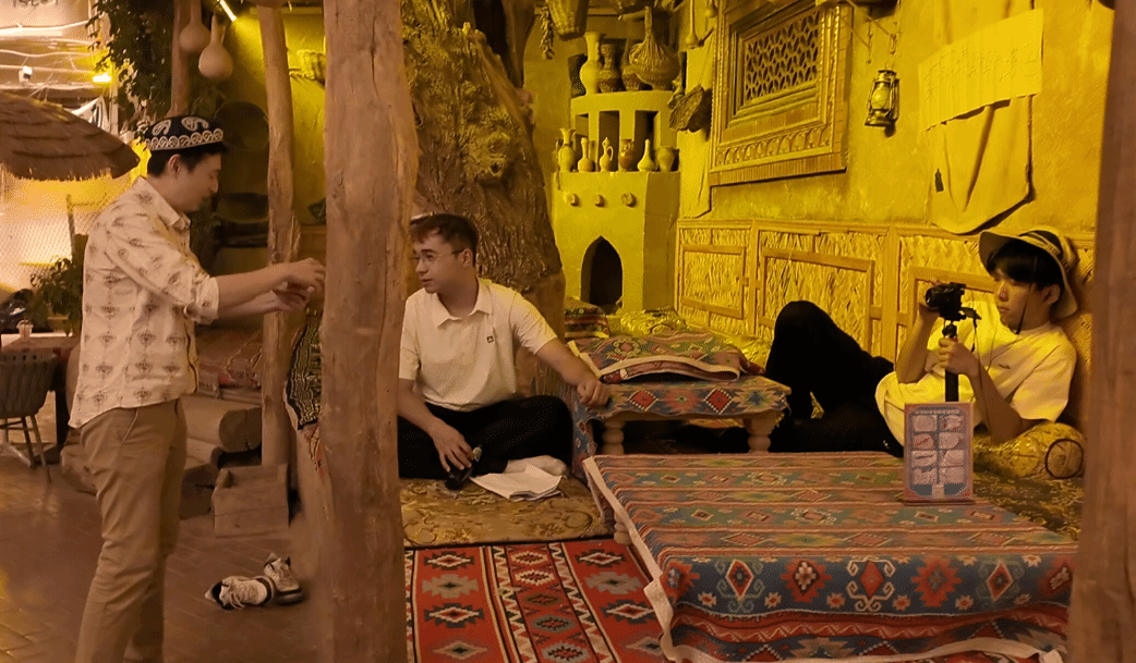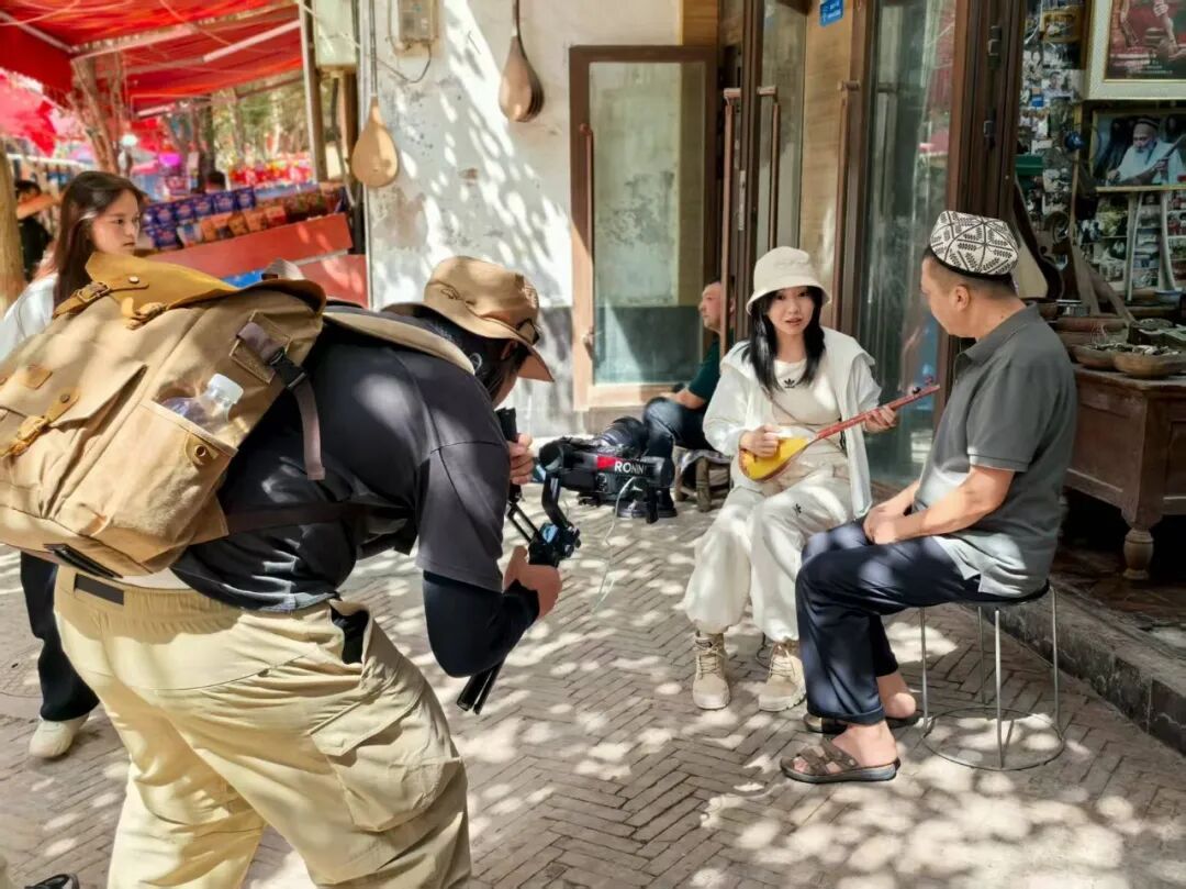 创作过程中,在喀什大学维吾尔族同学的参与下,创作团队围绕 “非遗手工”“民族文化”“生活习俗”“基建发展”“风情地貌”“特色美食” 六大主题,分别前往古城、冰川、湖泊、沙漠等具有人文历史厚度与能够体现独特自然景观的地点开展创作实践。