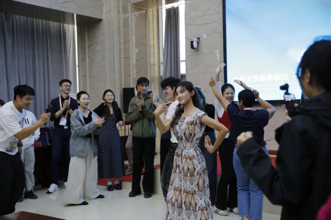 会议结束后,来自喀什大学的维吾尔族同学们为到场嘉宾献上了新疆民族特色的艾德莱斯巾,并表演了维吾尔族舞蹈。