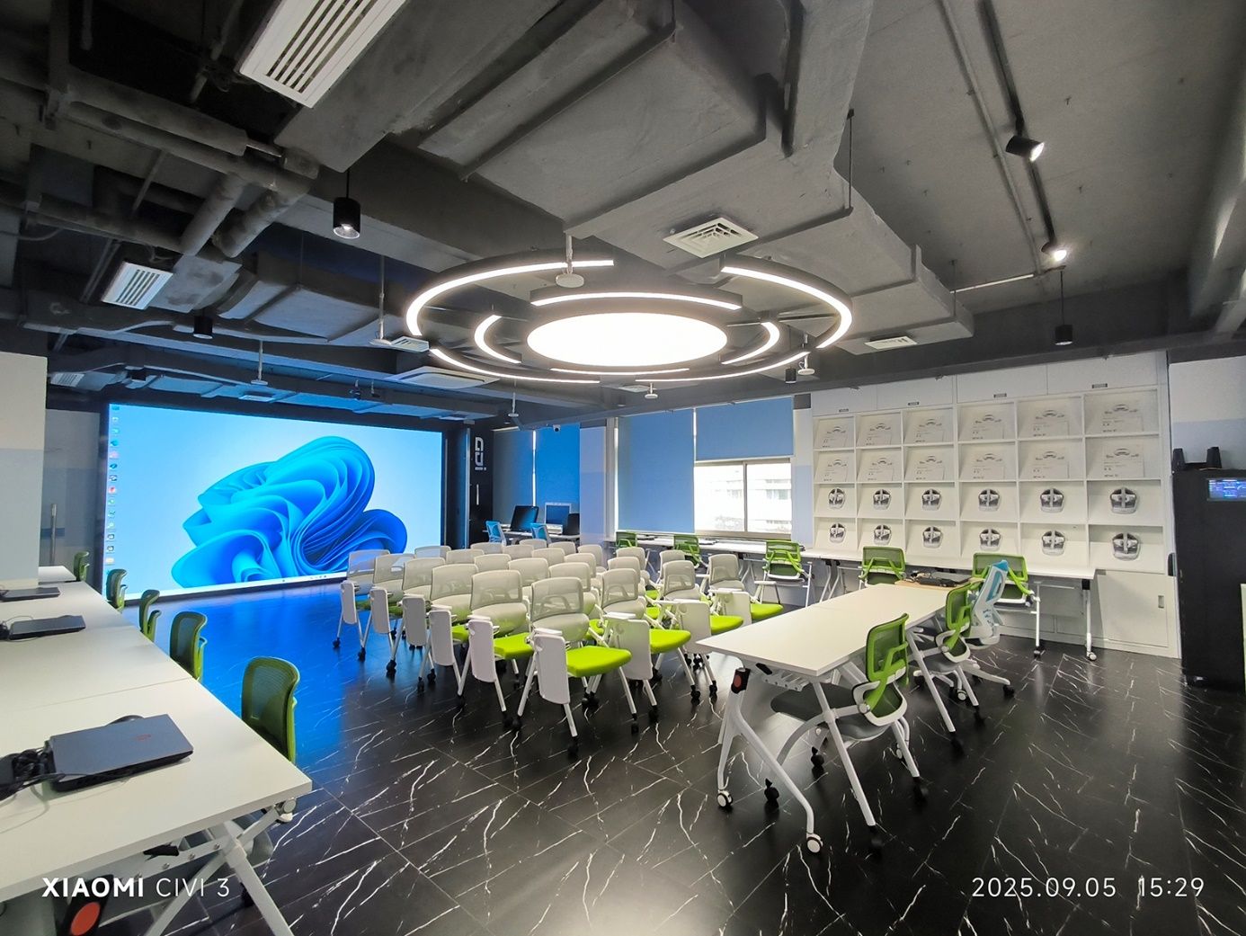 配备虚拟仿真新技术双创培养系统,致力于学科交叉,打造灵活可重构的实验空间,通过沉浸式大屏交互设备,支持多学科团队在此进行协同项目攻关与创新实践。