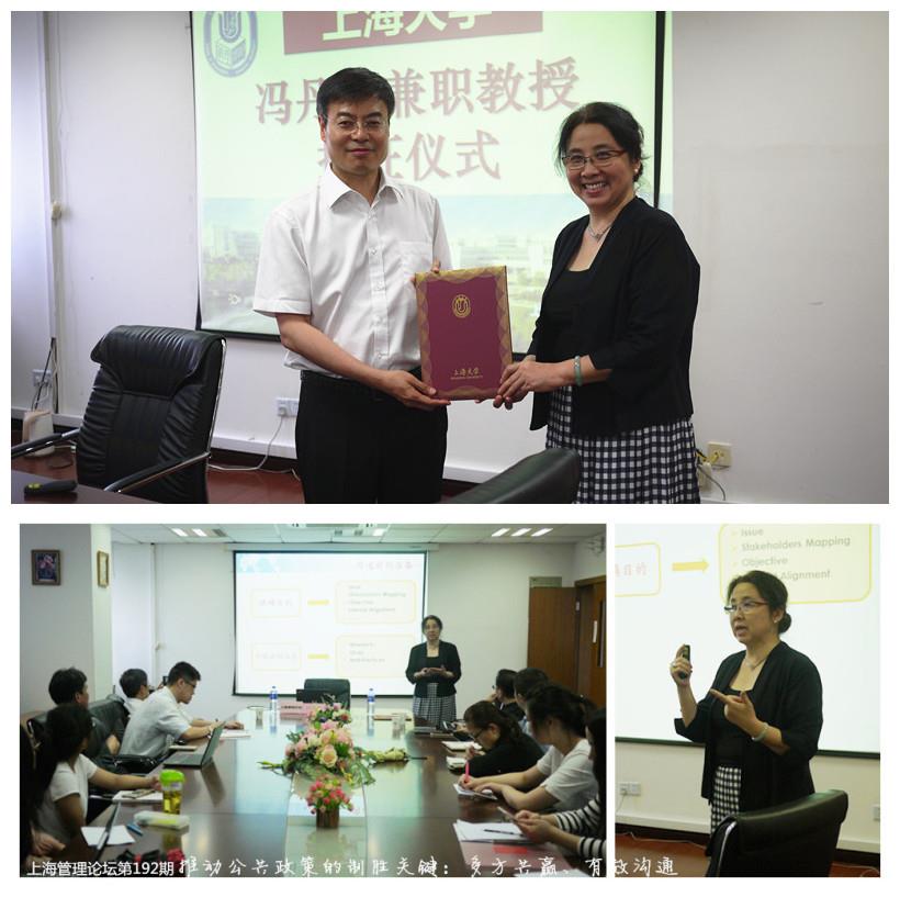 尤建新院长向在座师生隆重介绍了冯丹龙博士,作为辉瑞中国企业事务部总监的冯博士,同时还是全国政协委员、九三学社中央委员、中国经济社会理事会理事、中国控制吸烟协会常务理事。2000年,她曾赴美国议会面对美国参众两院的议员们发表演讲,以平实的语言、翔实可信的例证,为支持美国和中国进入正常经济贸易合作提供了最直接的证据。金校长对冯丹龙能够加盟ac米兰官网中文网站担任兼职教授表示热烈欢迎,并期待今后冯博士可以多来ac米兰官网中文网站传经送宝,与师生分享其在人力资源管理、管理沟通、公共政策领域的实践经验。