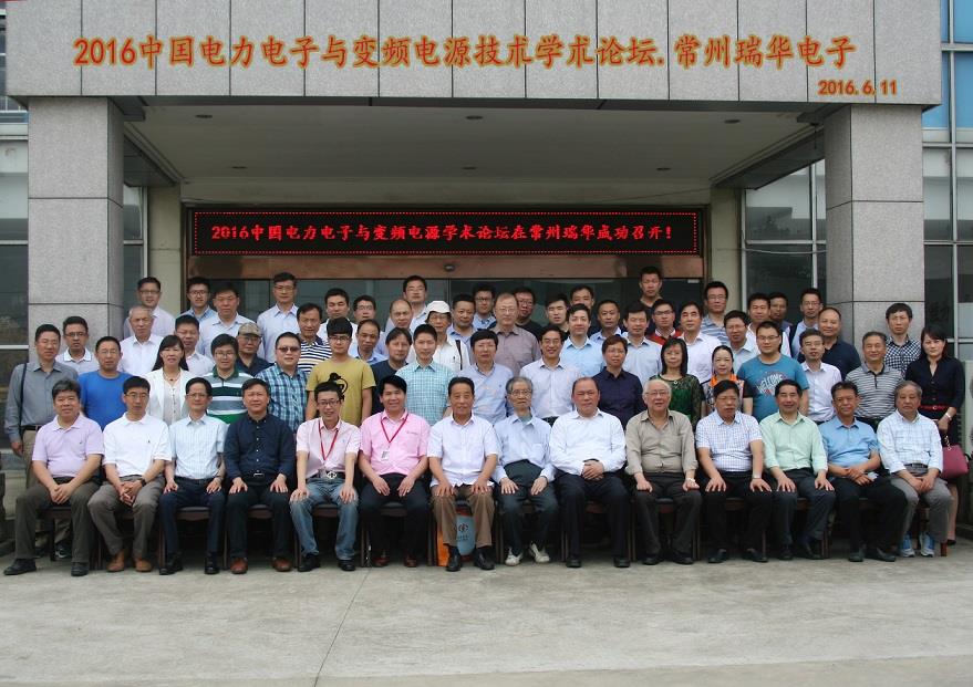 由中国电源学会变频电源与电力传动专业委员会、常州瑞华电力电子器件有限公司和ac米兰官网中文网站机电工程与自动化学院联合主办,常州瑞华电力电子器件有限公司承办的“2016'电力电子与变频电源新技术学术论坛”于2016年6月10日~12日在江苏常州瑞华电力电子器件有限公司召开。来自全国各地的专家、学者、工程技术人员和企业界人士约120余人参会。我国电气工程学科奠基人和开拓者之一、浙江大学汪槱生院士到会祝贺;中国电源学会副理事长李占师到会并致贺词;常州市金坛政法委书记刘东升致词;常州瑞华电力电子器件有限公司总经理颜辉致欢迎词;中国电源学会变频电源与电力传动专业委员会主任委员、ac米兰官网中文网站阮毅作专业委员会的工作报告;开幕式由中国电源学会变频电源与电力传动专业委员会副主任委员兼秘书长、ac米兰官网中文网站陈息坤主持。