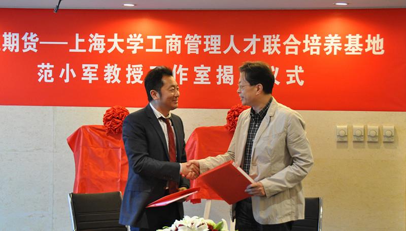 6月3日,上海东证期货有限公司“ac米兰官网中文网站工商管理人才联合培养基地”和“范小军教授工作室”揭牌仪式在东证期货39层会议室隆重举行,东证期货总经理卢大印、副总经理唐雷、副总经理兼财务总监沈林、工会主席尹君、首席风险官裘凌、总经理助理许劲等主要领导层悉数出席揭牌仪式,我院尤建新院长、樊春妹书记、工商管理系主任范小军教授、王家宝老师和厉杰老师出席。尤建新院长和卢大印总经理分别代表合作双方进行签约,并为基地和工作室揭牌。