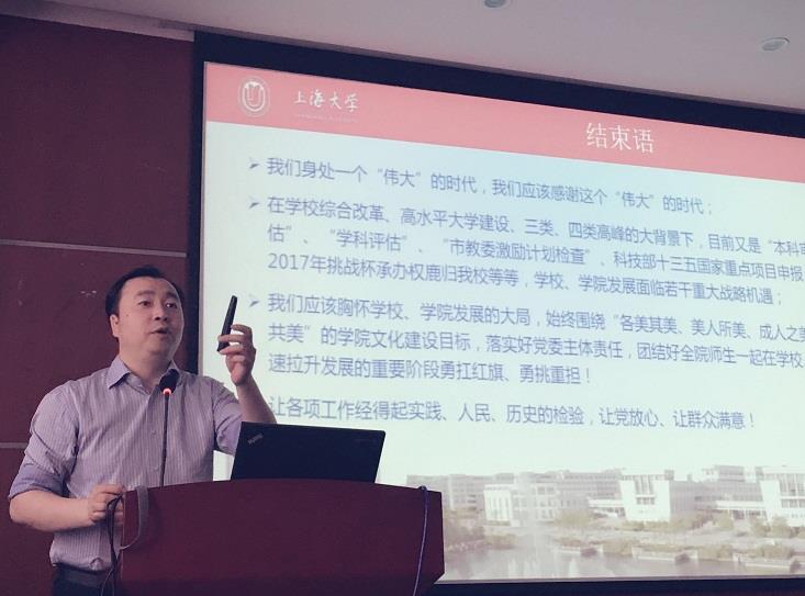 “怀揣着‘材料梦’,每一名党员要能在学校、学院深化机制体制改革中,充分发扬‘钉子’精神,做好表率;要平时看得出,工作时站得出,紧要关头豁得出。”2016年5月20日,材料学院党委书记周路海在东区材料学院B楼520会议室进行“两学一做”教育专题党课。学院党委委员、教工支部书记、支委、研究生专职委员、辅导员、学生支部书记等参加了本次课程学习。