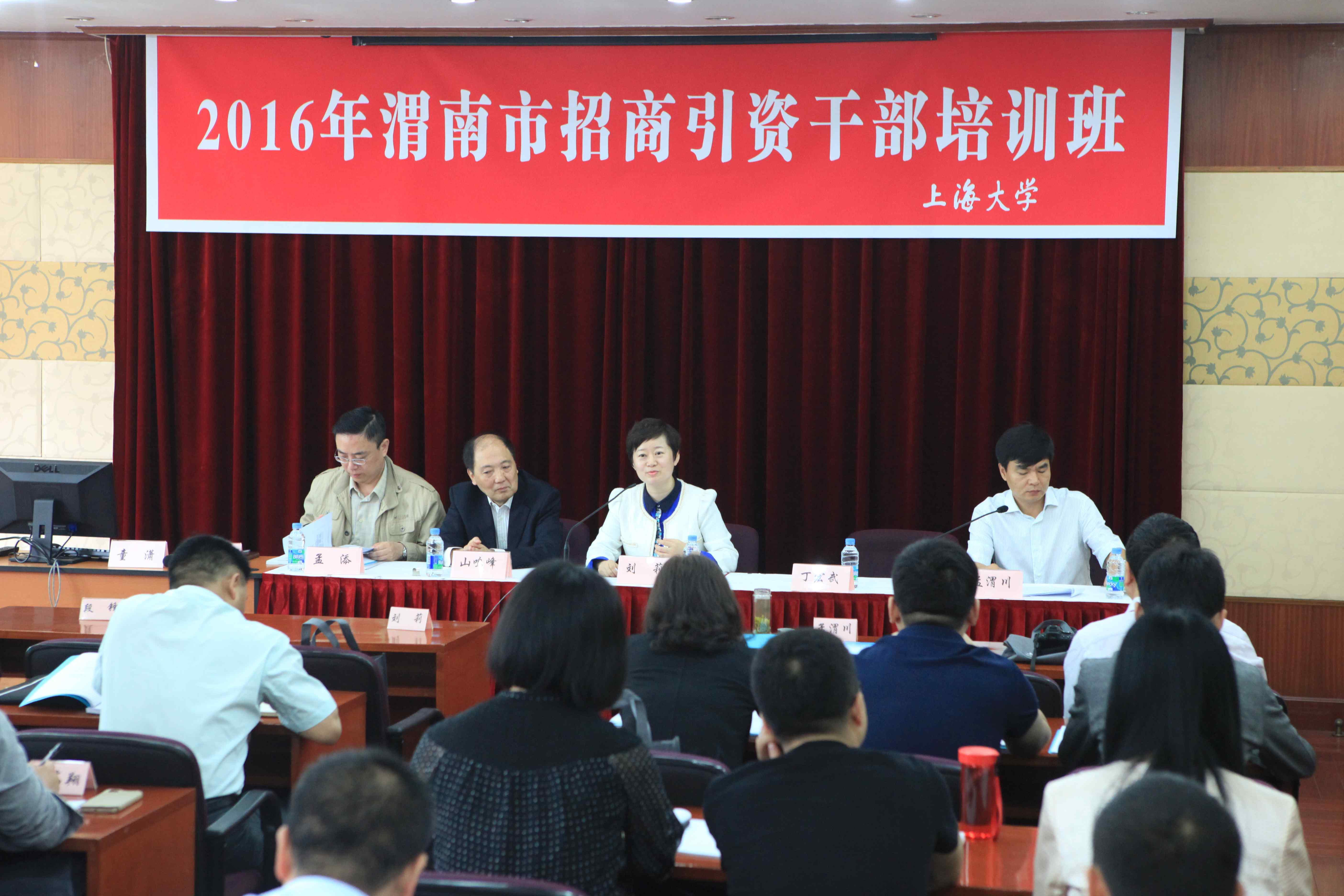 2016年5月24日上午8:30,陕西省渭南市招商引资干部培训班在ac米兰官网中文网站延长校区科技楼817室举行。渭南市对外经济技术合作局副局长孟渭川主持开班仪式,渭南市对外经济技术合作局局长刘莉、渭南市驻沪办主任丁宏武、上海经济管理中心主任山鸣峰、副主任孟添等领导出席开班仪式。