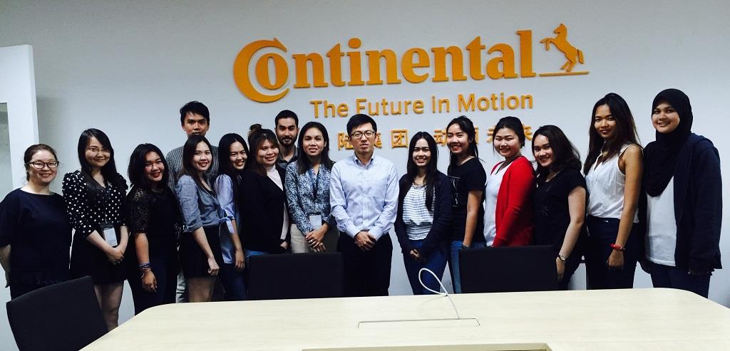 午餐后,Piyawan博士和Panomsak在国际部的陪同下来到位于嘉定区的德国大陆汽车公司财务中心,目前11位泰国学生在此实习。悉商一行人员的到来受到公司的欢迎。区域主管许萍为悉商来访人员介绍了公司的发展状况与主营业务,高度赞扬了泰国学生的实习表现。Piyawan表示,悉商安排学生进入外企实习,能够极高的锻炼他们的业务能力,为今后真正进入公司打下良好的基础。除此之外,也锻炼了学生的语言能力和人际交往能力。通过为期2个月的实习生涯,学生的“软实力”得到了明显提升。