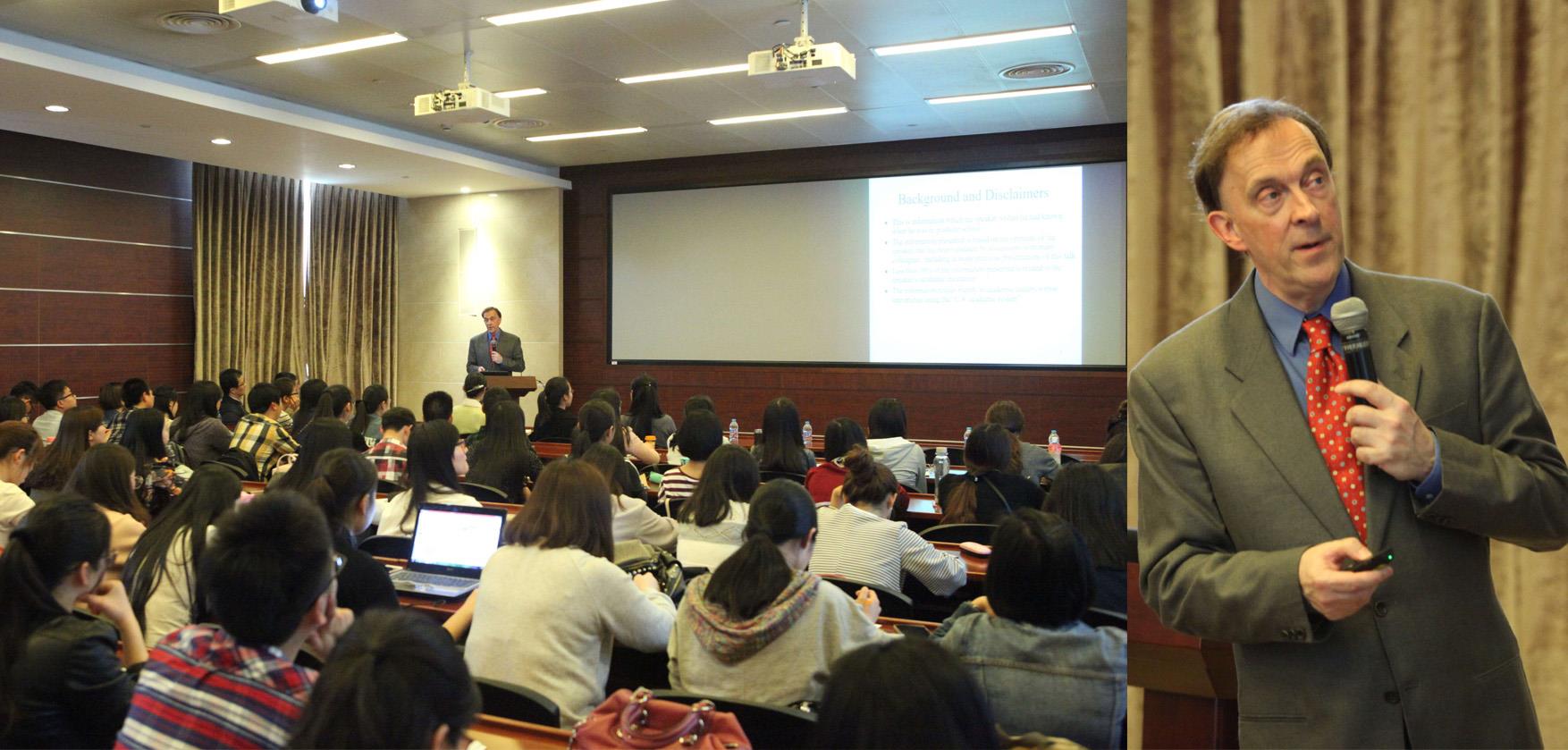 2016年4月14日下午3点,ac米兰官网中文网站“海外高端专家引智专项”2016国际大师讲坛之(三)于宝山校区乐乎楼思源报告厅成功举行。来自俄亥俄州立大学费舍尔商学院的Nicholas G. Hall 教授为在座师生作了题为“那些你不知道的学术生涯规划秘诀”的精彩学术报告。演讲由温小琴博士主持,管理学院副院长镇璐致辞,管理科学与工程系系主任林贵华教授等数名教师以及近百位上大学子出席了本次学术讲座。