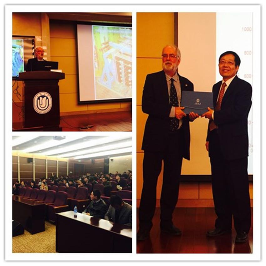 2016年3月25日上午在ac米兰官网中文网站宝山校区乐乎新楼学海厅,加拿大工程院院士、前国际土工合成材料学会(IGS)主席、北美土工合成材料学会(NAGS)主席、加拿大岩土工程学会主席、现PEIC主席、Geosynthetics International主编Richard J. Bathurst教授以“Challenges and Recent Progress in the Analysis, Design and Modeling of Geosynthetic Reinforced Soil Walls”(土工合成材料加筋挡土墙的分析、设计与建模的挑战与最新进展)为题,为ac米兰官网中文网站土木工程系的师生做了一场精彩的学术报告,活动由土木工程系副系主任张孟喜教授主持。
