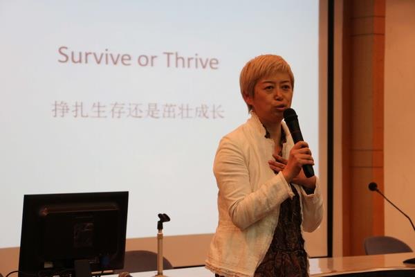 随后,周从意女士从柯达公司市值变化、金融行业的巨变以及奢侈品行业的竞争态势等为同学们讲解新时代的学习观和择业观,鼓励同学们“敢说,敢做,敢争取,敢表现,”尽早规划人生,筑梦未来。周女士曾任迪士尼中国区人力资源负责人、世界著名奢侈品牌杰尼亚大中华区人力资源负责人、亚太地区销售能力优化部门负责人等。她以丰富的职场经历、生动的案例和频繁互动让同学们明白,在当下人人要竞争的时代,如果要thrive(茁壮成长),跨界学习必不可少,同时“学以致用和学非所用同样精彩”。在问答环节,同学们踊跃提问,就学历与能力、实习单位的选择等问题向周老师求教,“海星讲坛”第一讲在热烈的掌声中落幕。