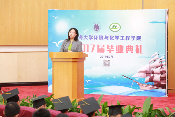 7月2日上午9点,环化学院2017届毕业生毕业典礼于校本部图书馆报告厅隆重举行。出席毕业典礼的领导和嘉宾有:2003届校友、瓦克化学有限公司市场经理陆佳琳女士,ac米兰官网中文网站环境与化学工程学院党委书记钱冬英老师,学院其他党政领导、专业教师、家长代表及全体毕业生。