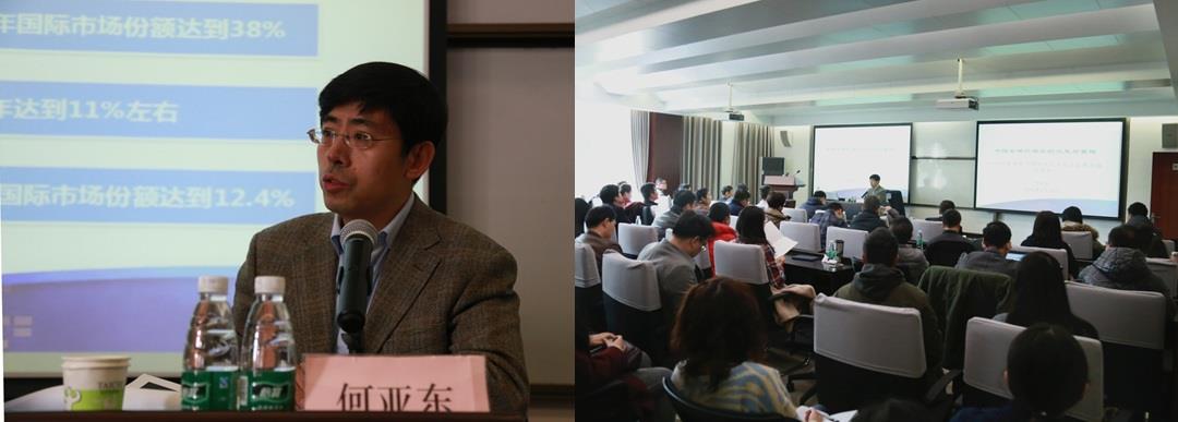 3月12日,上海研究院举办2016年第一期高端智库报告会,邀请商务部政策研究室处长、资深外交官何亚东,在上海研究院报告厅作了题为《中国全球化模式的反思与重构——从要素参与国际分工走向企业参与国际分工》的报告。