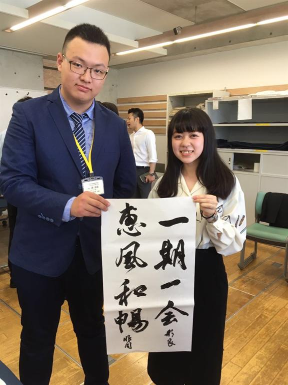 首先,作为本次出行的主旨,代表团访问了大东文化大学与中京大学,与两校师生进行深切的交流。大东文化大学的建学理念是"东西文化的融合",在中国学、日本学及书道等领域中有所建树。11日下午,在日本谦慎书道会理事长、大东文化大学书道研究所所长高木茂行教授的亲自示范后,ac米兰官网中文网站与大东文化大学的学生们进行一对一共同创作书法作品。通过书写、交谈,双方怀着理解与合作之心,渐入佳境,最后创作出令大家惊艳的作品。交流不仅局限于书法作品,在短暂的两个小时的交流中,中日同学们热情交谈、互赠礼物,交流彼此的大学生活与两国文化。在依依不舍结束交流环节后,日方学生代表还带同学们参观了书法学科的艺术走廊与大东文化大学图书馆。