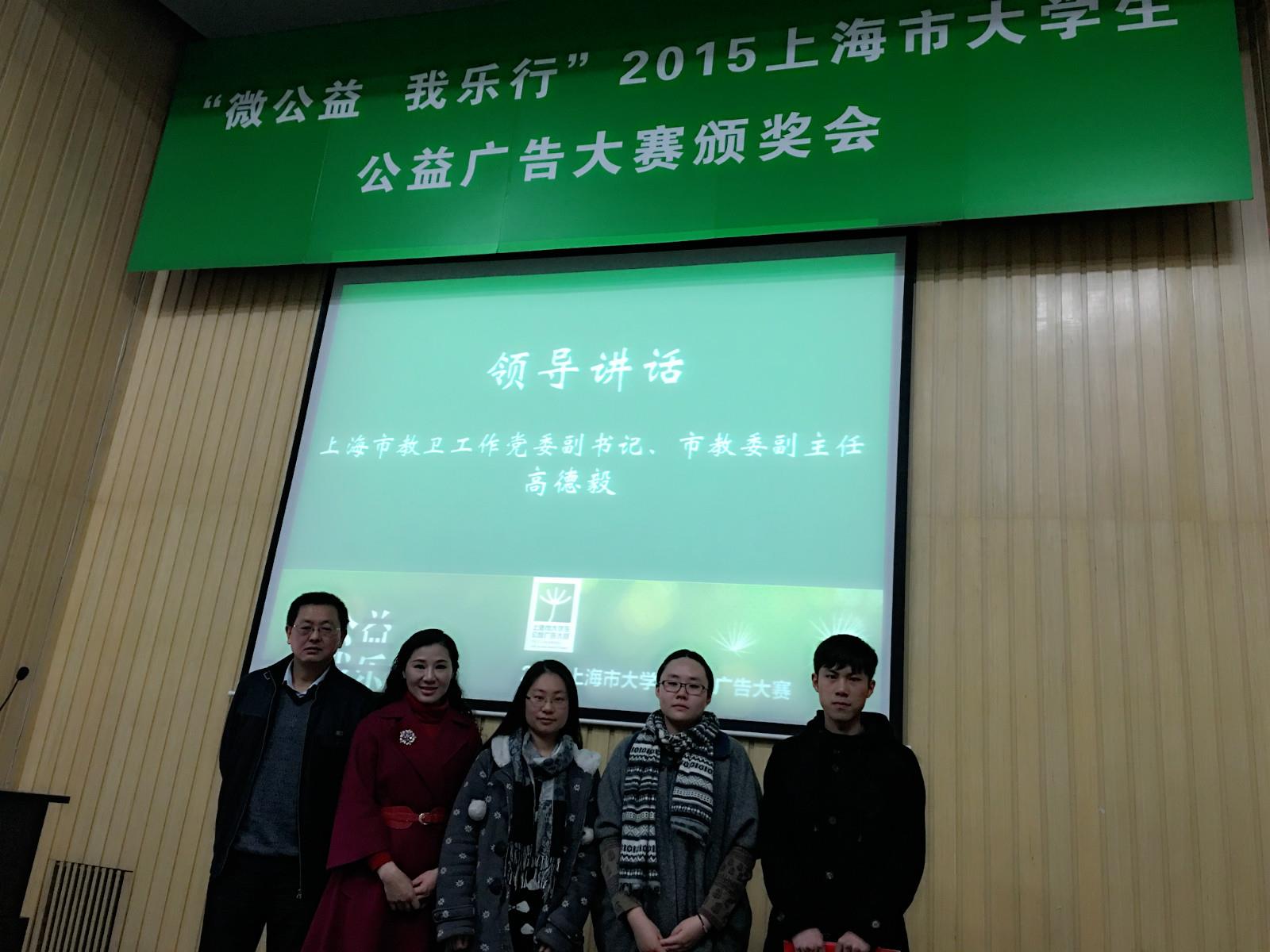 2016年伊始,捷报传来。历时八个多月的“微公益·我乐行——上海市大学生公益广告大赛”终于落下帷幕,于1月3日在同济大学举行了隆重的颁奖典礼,我院获奖师生受邀出席颁奖典礼。