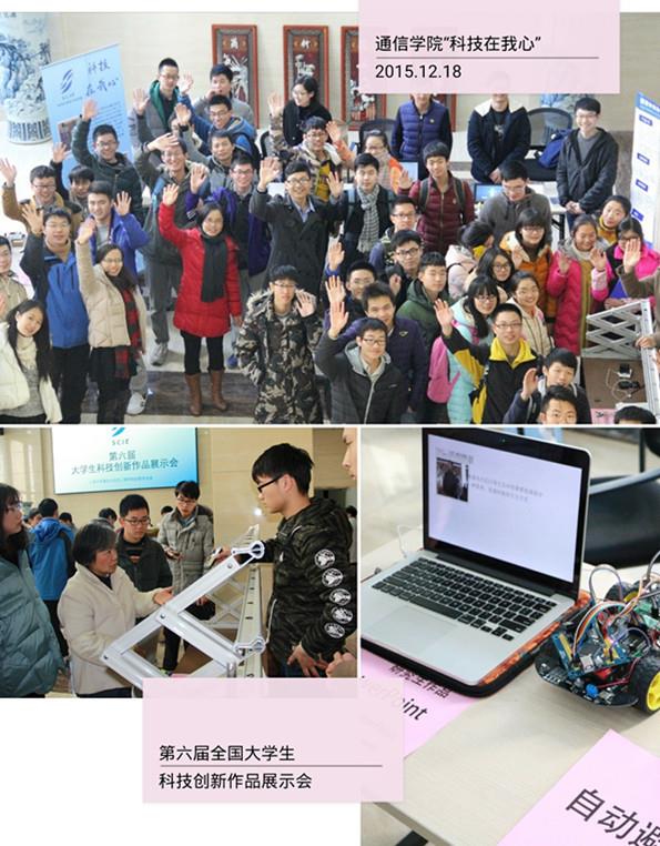 2015年12月18日下午1点,ac米兰官网中文网站通信与信息工程学院第六届大学生科技创新作品展在校宝山校区翔英大楼一楼大厅隆重举办。通信学院执行院长王廷云,副院长严壮志、彭章友,党委副书记胡乾源等领导、学院部分教师、团委书记薛程、14级辅导员彭秀平、水凌波参加了此次活动。作品展历时两个多小时,共展出十余件展品,超过200名师生到场参观。
