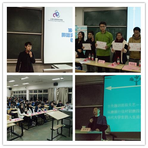 首先,副院长李颖洁教授为本次仪式致开幕词。李颖洁院长强调学术的内涵与学术之路贵在坚持与勤奋,希望同学们在学术季各平台上有所收获。胡申生教授带来学术季钱伟长讲坛系列报告:《士先器识而后文艺——从唐裴行俭对初唐四杰的评论谈当代大学生的人生追求》。胡教授以自己亲身经历引出做人道理:取象于钱,外圆内方。就做人,胡教授引用杨修“鸡肋”的典故,解释了如何做人的道理:有学问,不代表就能刚愎自用;承担大事,不仅仅需要智商,还需要胸襟气度。胡教授报告博古论今,通过对初唐四杰的评论提出对于当代大学生至关重要的四个方面即:度量、见识、能力与情商,深受同学认同。接着,为了肯定同学们在学业上取得的成绩,鼓励大家在学术方面更进一步,院直属党总支副书记韦淑珍、团委老师阮杜娟、辅导员陈茜为2015-2016学年秋季学期在工科数学分析竞赛中获奖的同学们颁发奖状。颁奖结束,学术部“朋辈辅导室”助教与同学们见面,表达了服务同学的热忱。紧接着,副院长姜颖教授及任课教师以视频方式表达了对钱院学子学业发展的殷切希望。最后,院团委书记阮杜娟介绍了钱伟长学院第一届学术季包含的9大项目:数学建模竞赛辅导、趣味科技节、ONLINE系列英语竞赛、读书交流会、寒假经典阅读、物理学术竞赛预赛、钱伟长讲坛、伟长学子论坛,学霸的“笔记本”、“作业本”等。
