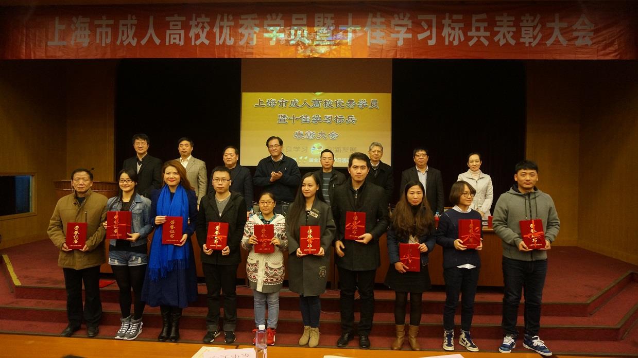 2015年11月30日,上海市成人高校优秀学员暨十佳学习标兵表彰大会在ac米兰官网中文网站延长校区召开。本次活动作为上海市第十一届全民终身学习周活动之一,由上海市成人教育协会院校教育专业委员会组织,表彰了以ac米兰官网中文网站潘斌为代表的10名同学为2015年上海市成人高校“十佳学习标兵”,复旦大学王春灵等179名同学为2015年上海市成人高校“优秀学员”。上海市成人教育协会邹益副会长、上海市教委高教处赵坚副处长、上海市教委学生处丁良副处长及来自53个院校的一百多位师生参加了表彰活动。