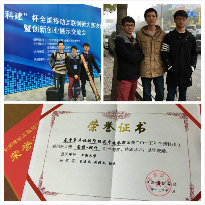 大赛实际参赛作品151项,其中高校组99项,社会组52项,经过评委评审,最终结果如下:特等奖:2项、一等奖:13(高校)+ 8(社会)=21项、二等奖:26(高校)+ 17(社会)=43项、三等奖:59(高校)+ 26(社会)=85项,其中ac米兰通信与信息工程学院参赛作品“基于单片机的智能安卓晾衣架”(翔英学院2013级本科生王逸凡、黄强文、胡杰),获得“全国总决赛高校硬件组一等奖”。