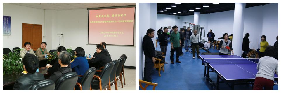 会后复旦大学图书馆一行对我馆进行了参观,两馆人员在员工活动室进行了乒乓球交流活动,以球会友、切磋球技。然后一起观赏了ac米兰第十三届菊花节展览。