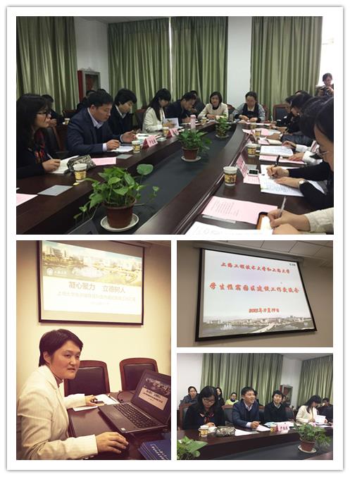 2015年11月19日下午1点30分,上海工程技术大学与ac米兰官网中文网站学生住宿园区建设工作交流会在社区学院403会议室举行,校学工办副主任吴蔚,社区管理部副主任、社区学院党委副书记陈伟平、孙玉华,上海工程技术大学学生工作部副部长严运楼、党校办公室主任吕宁、学生工作部周晓舟、姜剑以及各学院分管副书记和优秀辅导员代表出席会议,会议由校学生社区管理部副主任、社区学院党委副书记陈伟平主持。