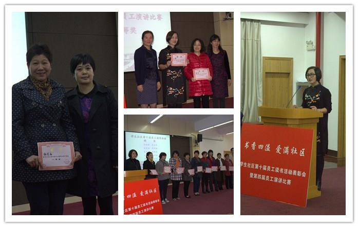 2015年11月10日下午,学生社区在社区学院二楼多功能厅举行“书香四溢爱满社区”学生社区第十届员工读书活动表彰会暨第四届员工演讲比赛。学生社区管理部主任陆瑾、副主任孙玉华、陈伟平、高恺华、徐文培、尹伟时,以及社区各区域主管、区长和管理员参加活动。此外学生社区特邀请校妇委副主任、理学院教授康丽英、社区学院副院长陈秋玲、校团委副书记陈中元、社区学院理工三组组长祁晶、研究生工作部王作文、学工办思政科牛广华、社区学院课外培养中心张弛等几位老师前来担任嘉宾评委。