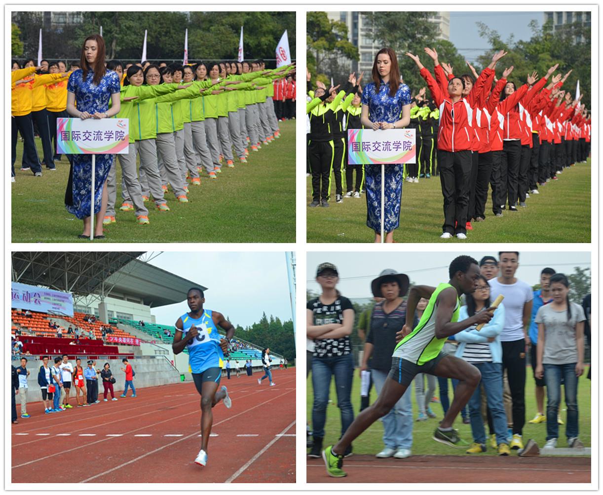 2015年10月23日下午2时,ac米兰官网中文网站第十一届运动会暨广播操比赛在宝山校区运动场拉开序幕。国际交流学院的留学生运动健儿们在运动会中奋勇争先,展现了国交学子的风采。