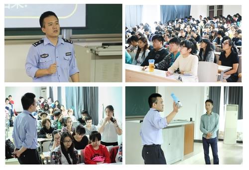 随后,为加强学院的安全管理,确保师生的人身财产安全,学院邀请了嘉定区公民警校的王警官来为同学们进行安全防范教育。王警官结合详实的案例向同学们展示了一系列发生在我们身边的突发案例,包括自然灾害、公共卫生事件、事故灾难、社会安全事件等方面。王警官通过与同学们的互动演示,亲切有趣的介绍,回放多起事故视频,唤起了同学们对危险的警戒之心,防范之意。在一幕幕可悲的惨案中同学们不自觉地回想起与那些与自己擦肩而过的危险。在感叹生命的脆弱与宝贵的同时,也深化了同学们的安全防范意识。而王警官所给与同学们具体的防范危险的方法技巧,也帮助同学们提高了防范的技能。