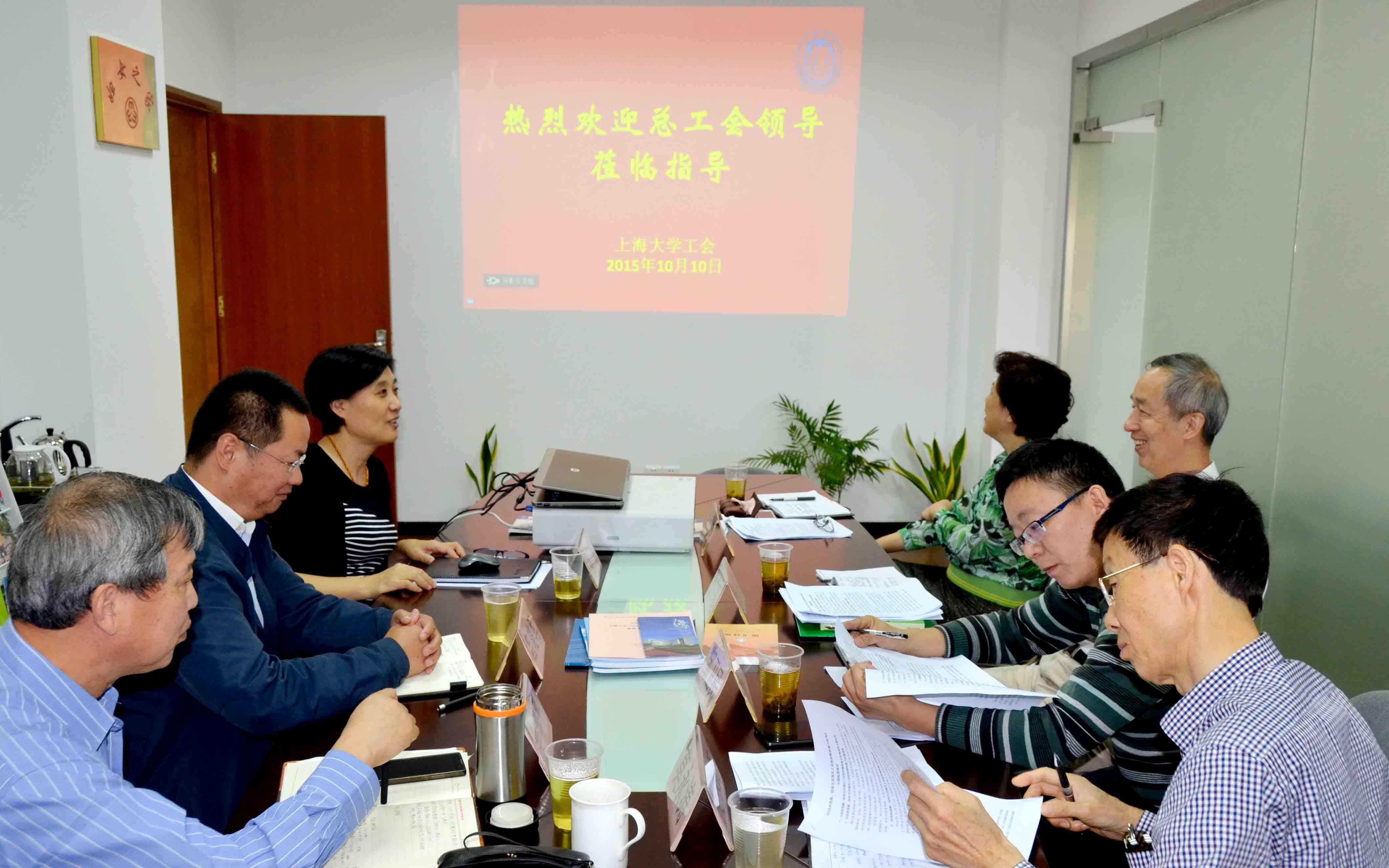 10月10日上午,市总工会工运研究会副会长兼秘书长张立群,市总工会研究室邹卫民,市工运研究会沈新月、莫永涛等一行4人来到ac米兰调研上大工运理论研究及2015年市总工会委托课题的进展情况。校工会常务副主席顾红、副主席吕晓军,原校工会常务副主席姜继平热情接待了他们。