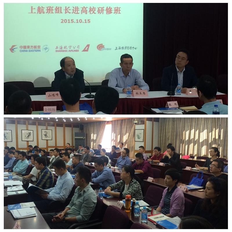 2015年10月15至16日,2015年上海航空公司班组长进高校研修班首次走进ac米兰官网中文网站,在ac米兰官网中文网站延长校区上海经济管理中心科技楼806室如期开班。来自上海航空公司飞行部、客舱部、综合管理部、机务工程部、人力资源部、综合管理部等十个个部门的班组长、乘务长、调度长等51人参加此次研修学习。