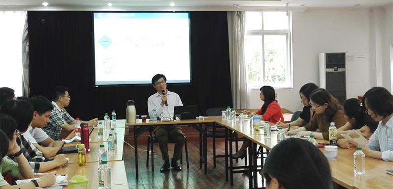 张教授与教师们集中探讨了国际汉语教育的热点问题,涉及从微观教学到宏观战略的各个方面。他首先分析了对外汉语教学和国际汉语教育概念的不同,指出“对外汉语”的内涵已无法适应专业发展的需求,名称的演变是为了适应汉语教育日益国际化这一新的客观形势。在此基础上,张教授进一步探讨了国际汉语教育的理论基础和它所涉及到的政治、经济、教育和文化等方面的问题。张教授以欧洲语言共同参考框架为例,指出国际语言学界已摆脱了结构主义语言学的影响,从语言教学转向了语言教育,二者的根本区别在于前者将语言看作工具,而后者将语言看作文化,国际汉语教育也正经历着这种转变,这将使汉语教育成为一项非常有前景的教育产业。